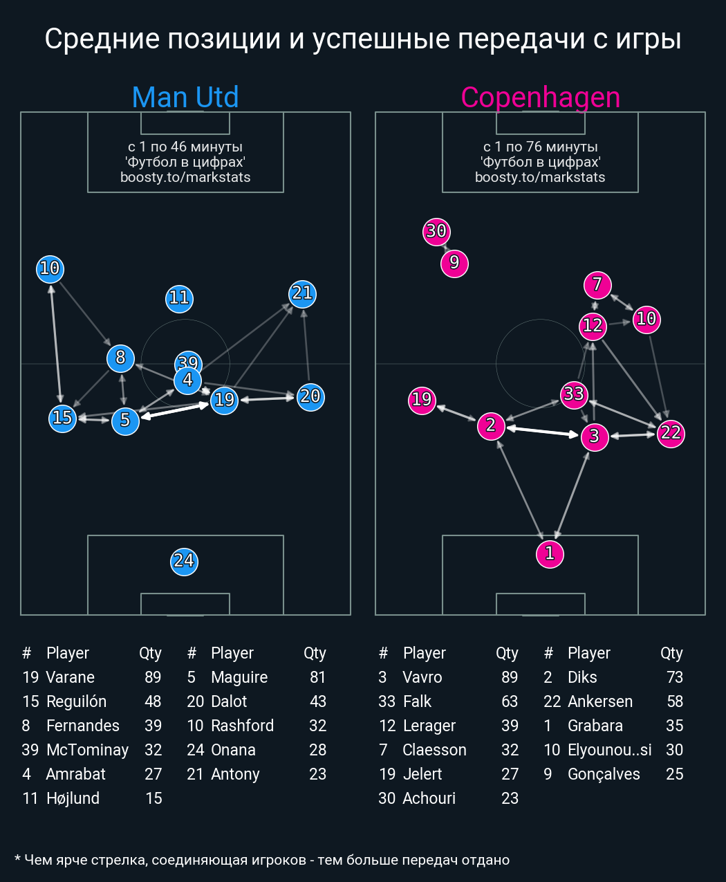 43 успешных передач из 55 попыток (1 под удар, 3 с продвижением, 10 на трети соперника)