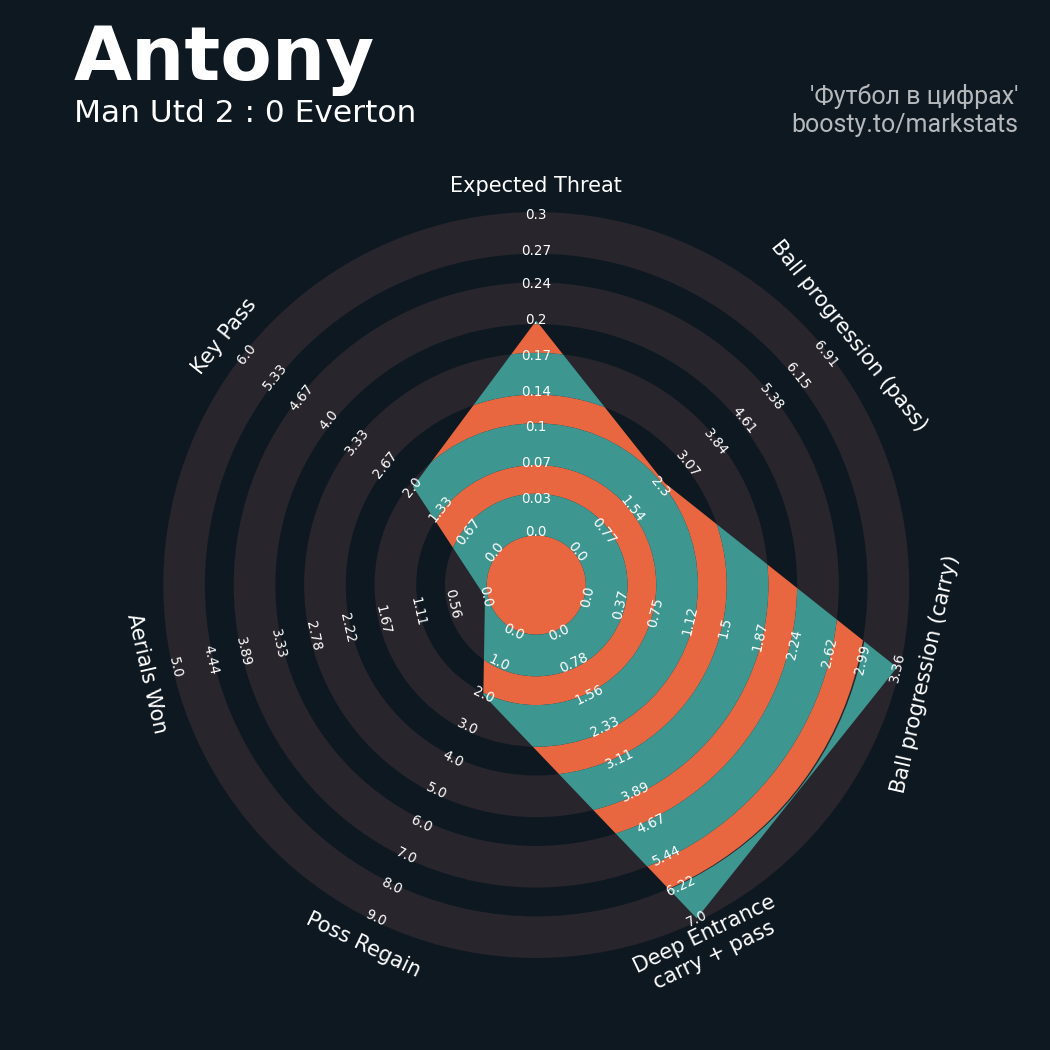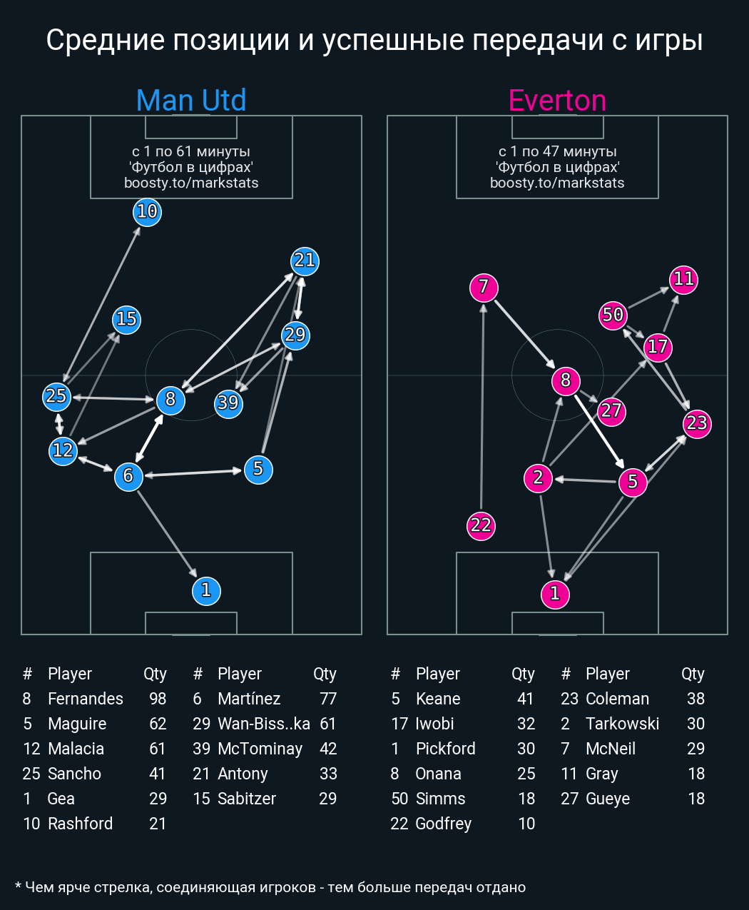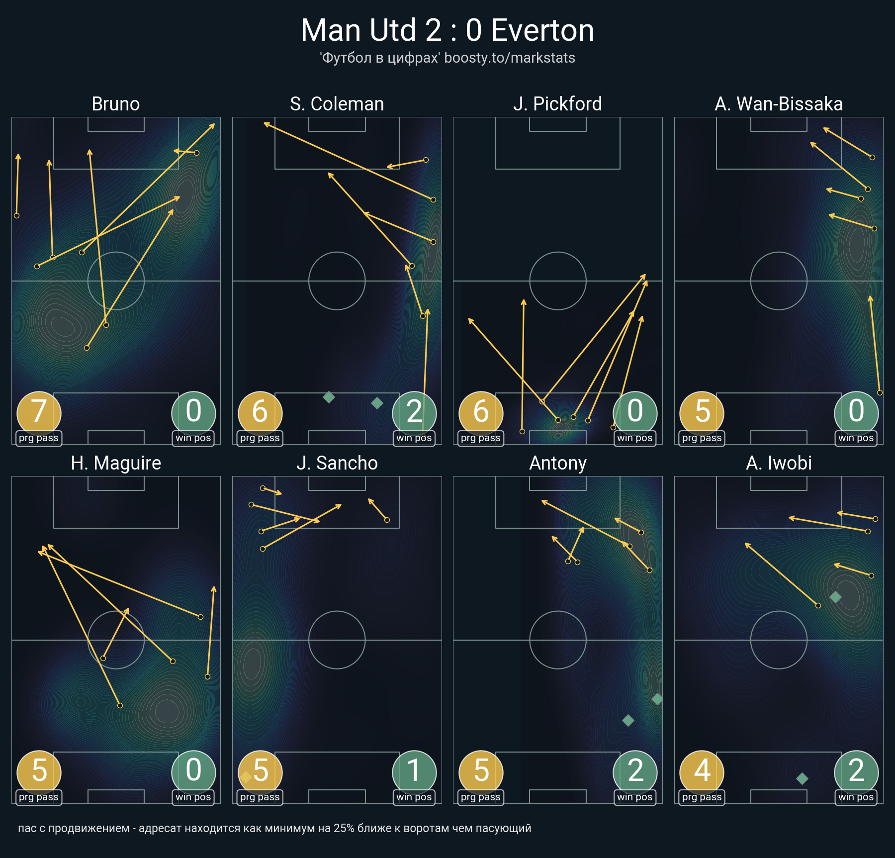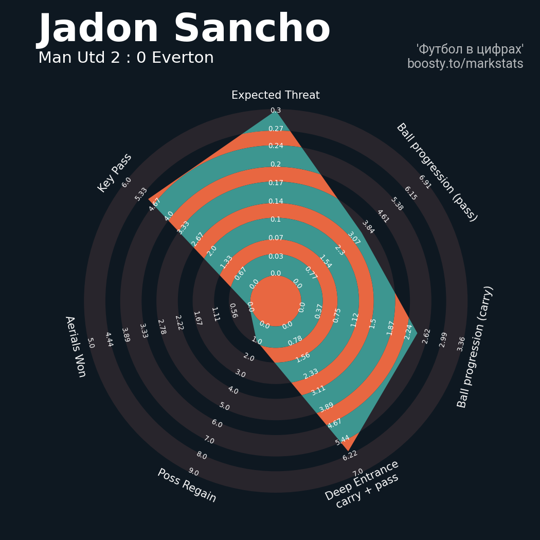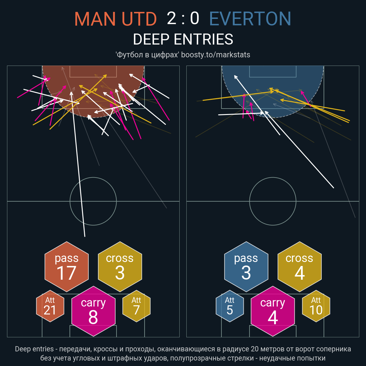 20 успешных передач из 30 попыток (2 под удар, 3 с продвижением, 8 на трети соперника)