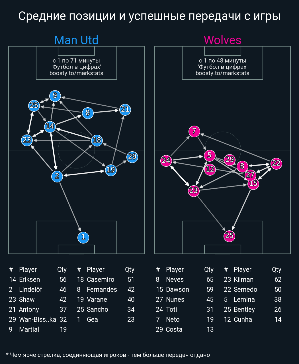 47 успешных передач из 53 попыток (2 под удар, 4 с продвижением, 12 на трети соперника)