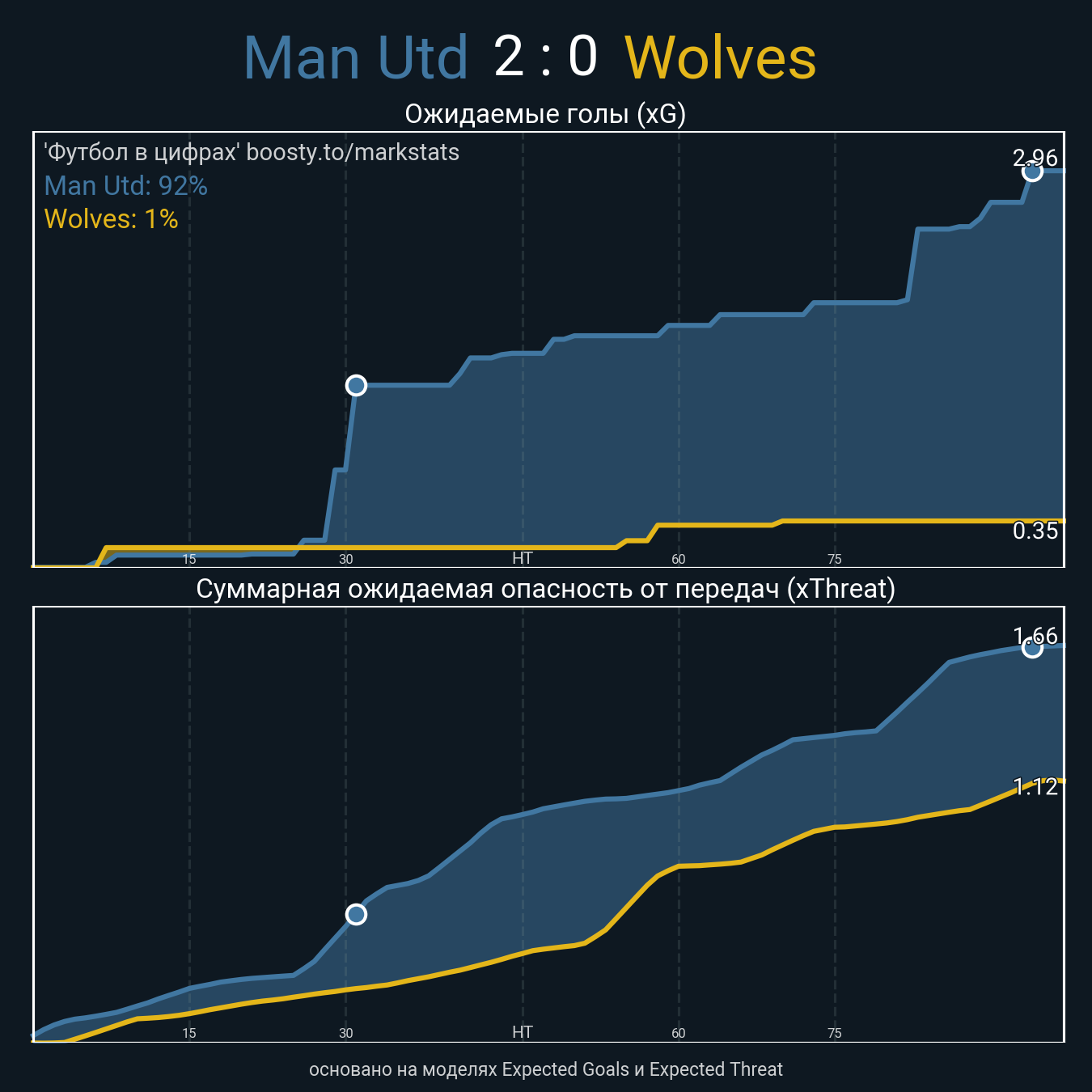Ожидаемые голы (NPxG): 2.96 - 0.35
