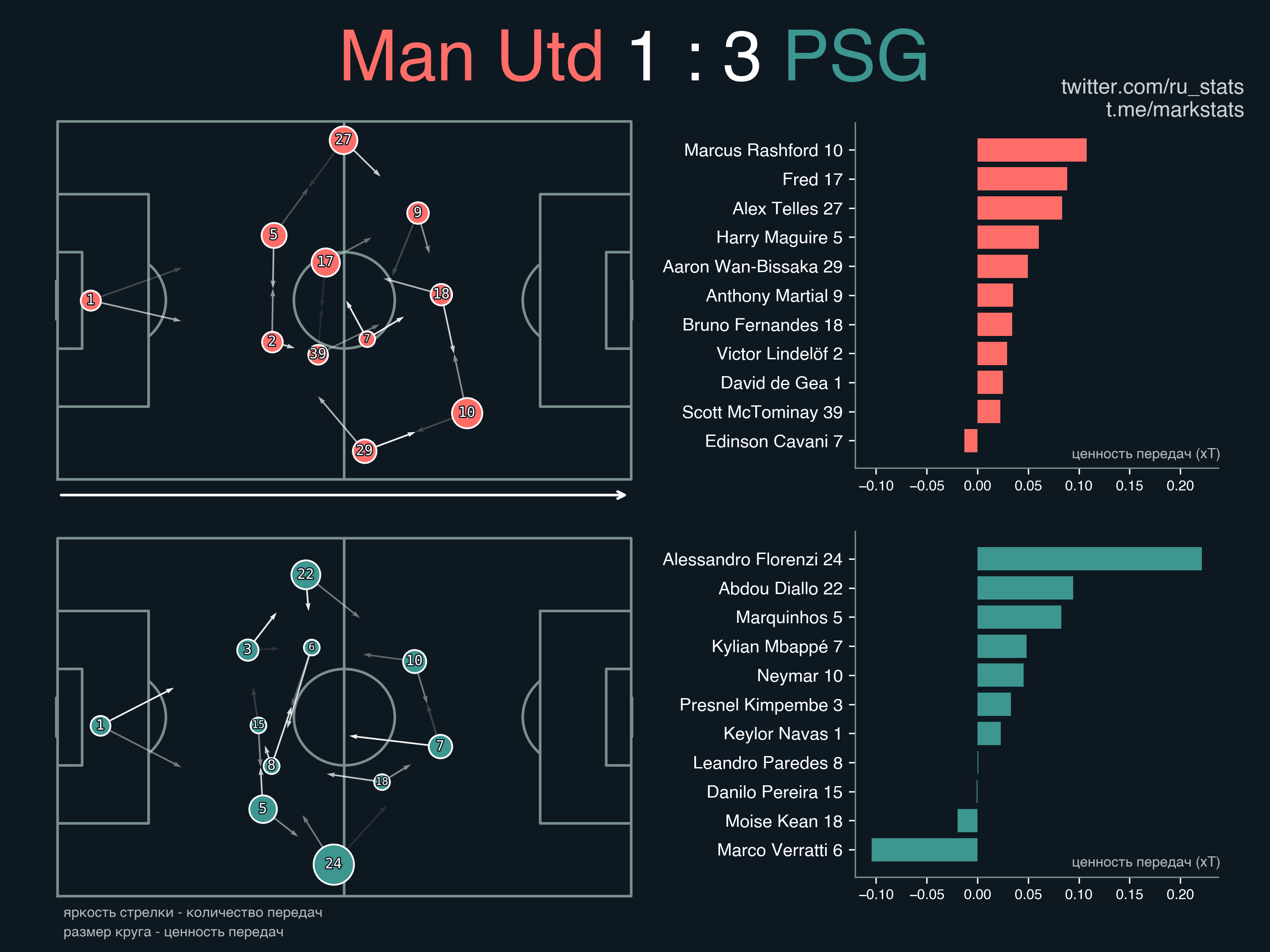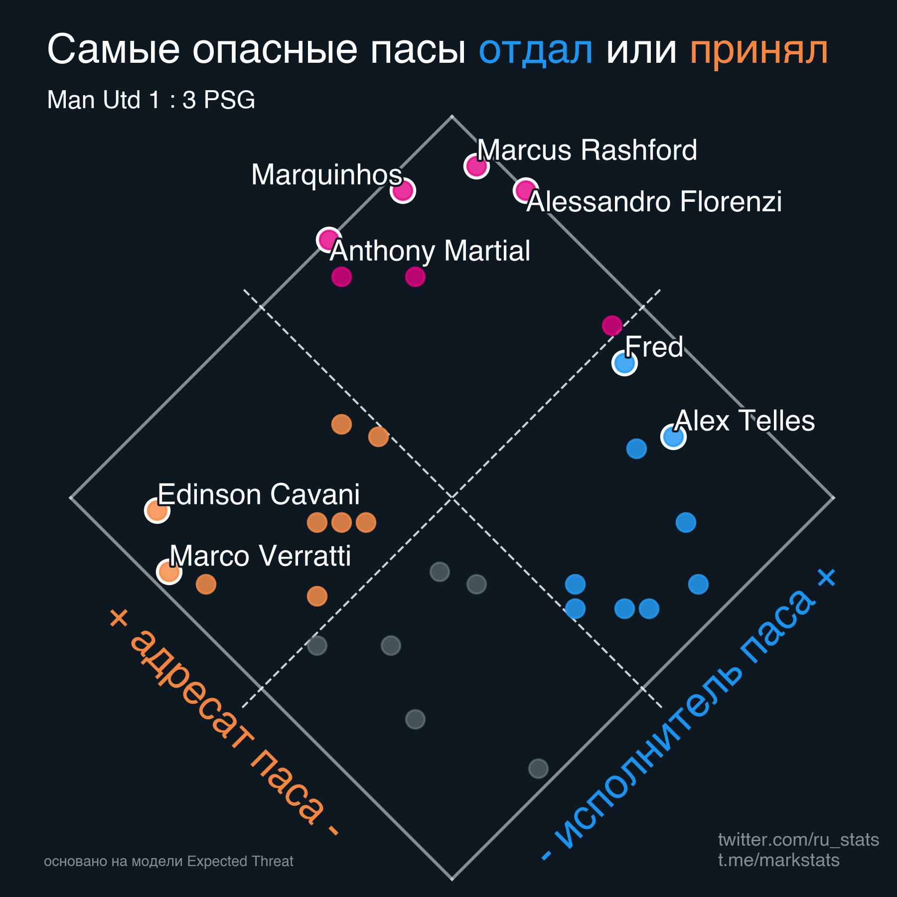 Маркиньос и Марсьяль - адресаты самых опасных передач (согласно модели xT).