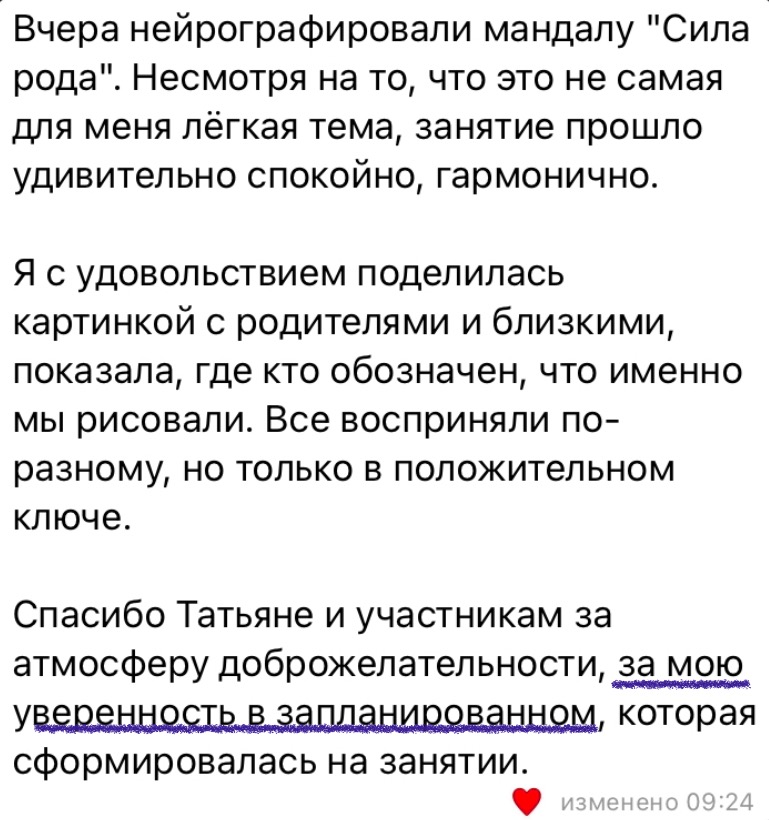 - Получите удовольствие от творчества и создания таких отношений со своим родом, которые будут не тормозить, а наоборот усиливать вас, давать поддержку, энергию, ощущение защищённости и благополучия.