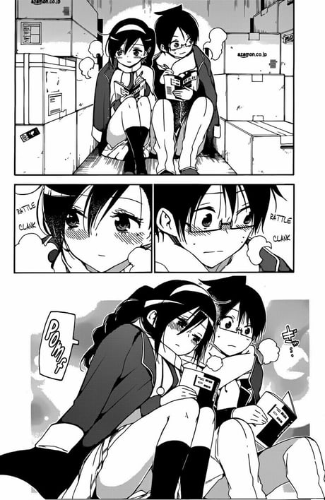 This manga dives right into the main couple, Narumi Momose and Hirotaka Nifuji, dating in the first chapter . After Hirotaka asks Narumi out because they have been childhood friends and reunited after a few years, they decide to date . Albeit because they are both otaku, their relationship is a bit awkward while at the same time sweet .