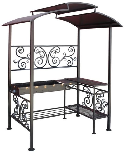 Мангалы с крышей, фото которых отличаются, предусматривают многочисленные декорирующие элементы . Иногда они могут иметь не столько украшающий, сколько практичный смысл .