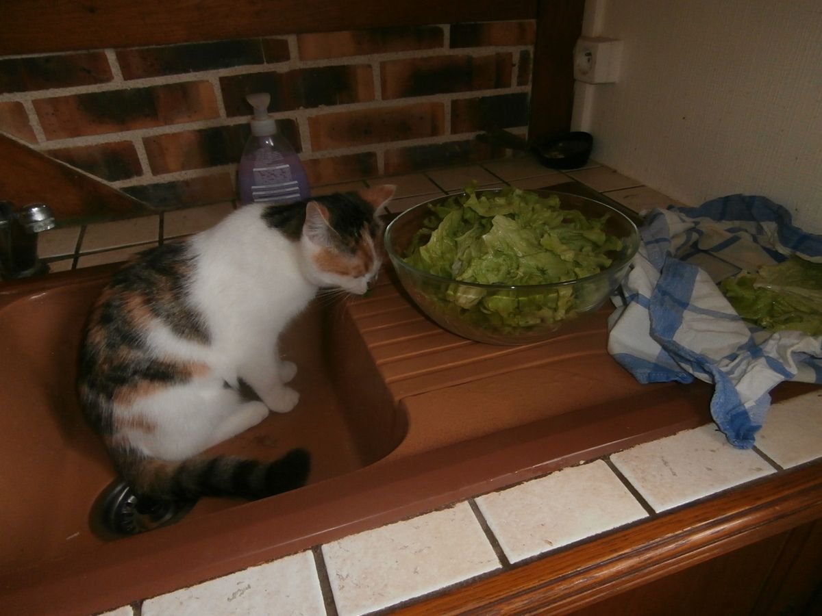 Mange la chatte dans le jardin