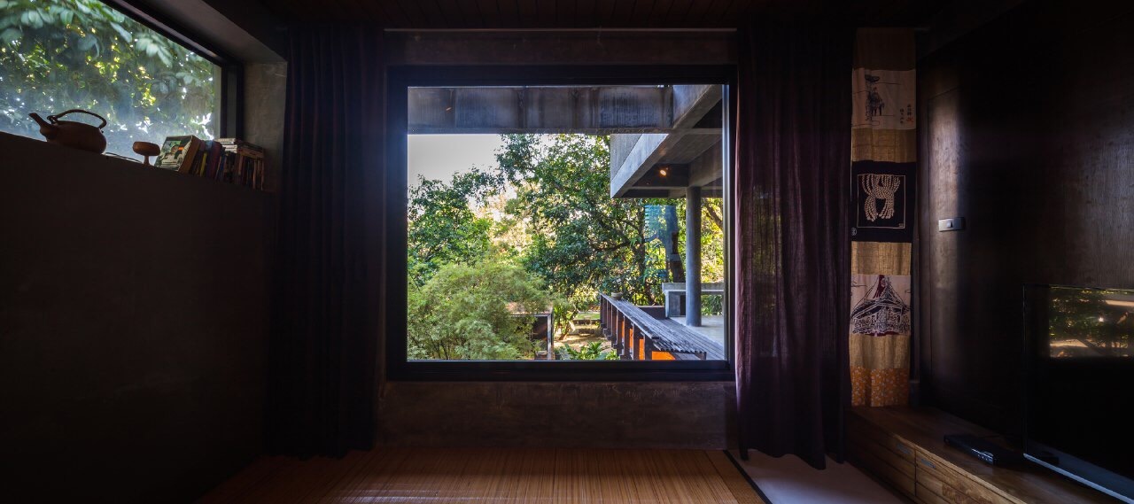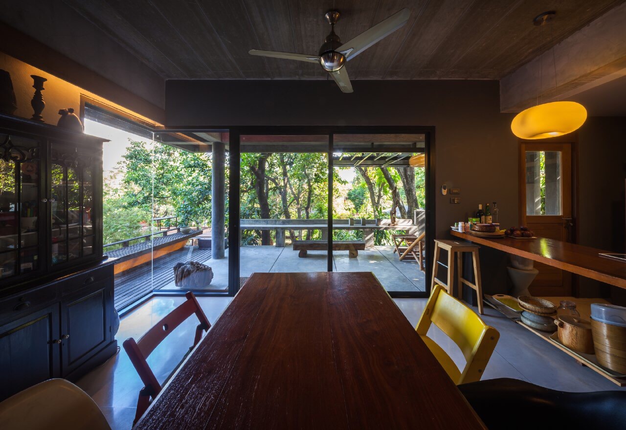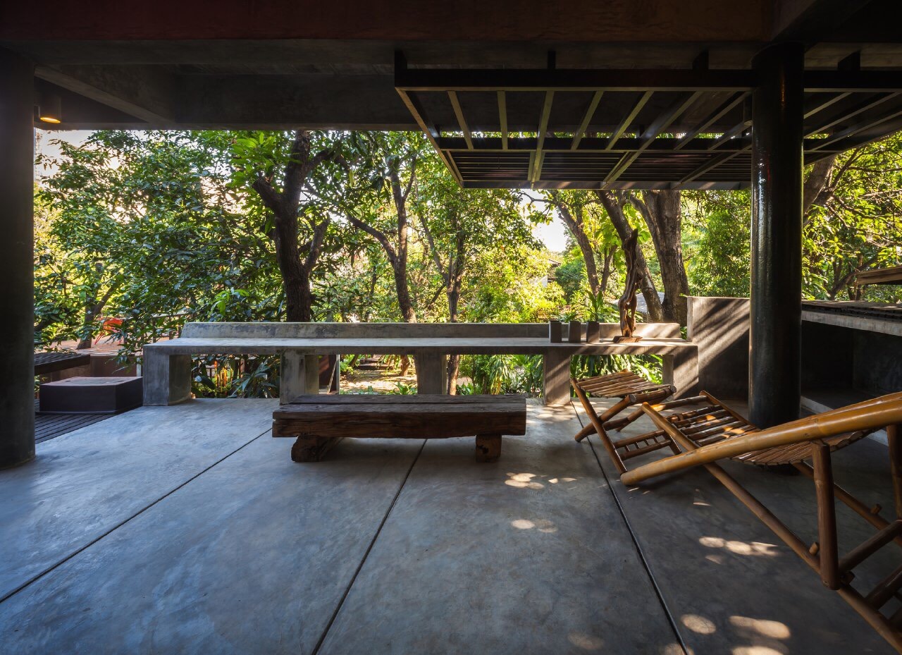 Efficiency: The materials used are selected with care, each surface has to correspond with the area's function, and has to have a low associated construction cost. House Planning There is a need to not disturb the existing landscape, which consists of old mango trees. The house was then planned to take up only a corner of the site, avoiding all trees, acting as a screen to block the view of the outside apartments from the existing houses, all the while taking in as much wind as possible.