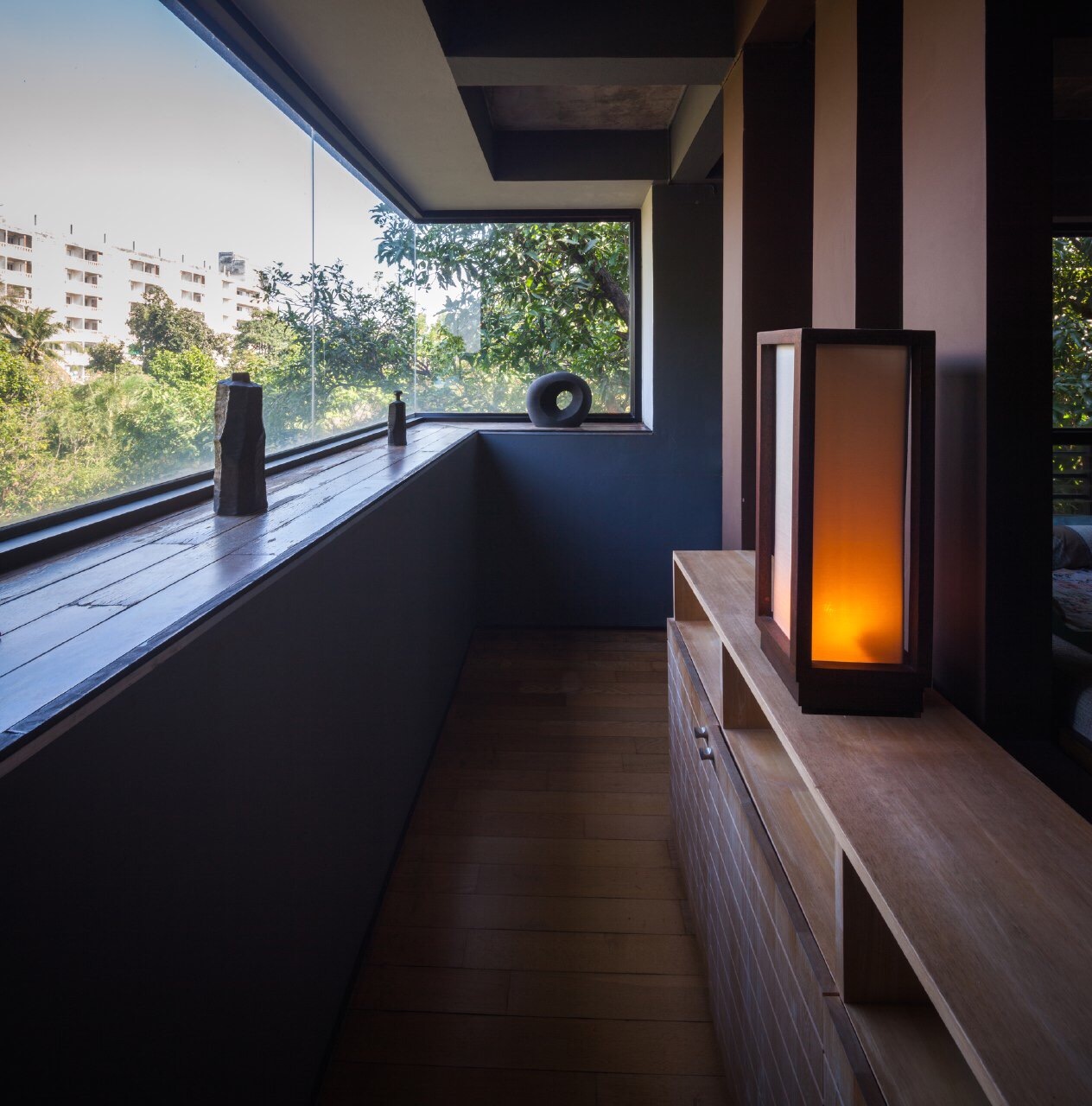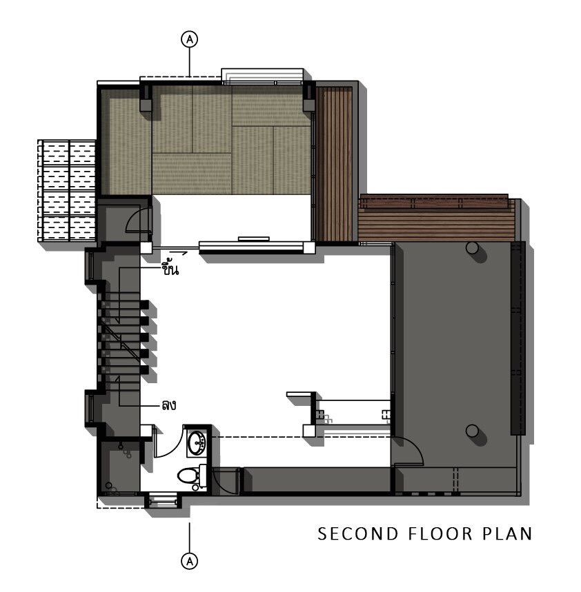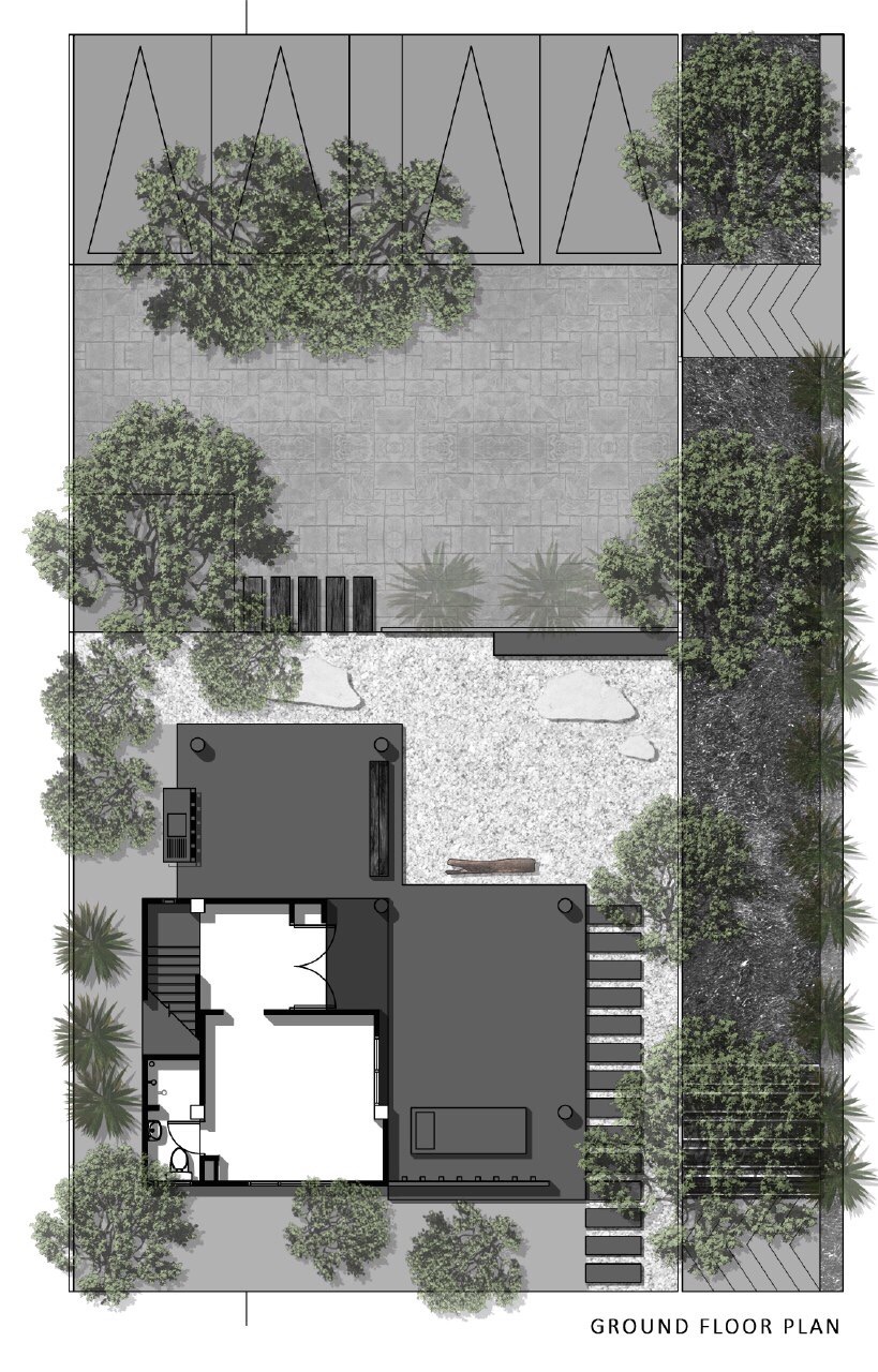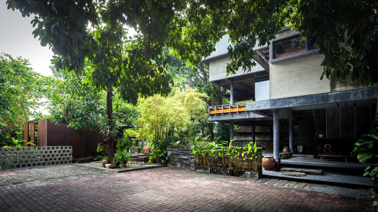 Efficiency: The materials used are selected with care, each surface has to correspond with the area's function, and has to have a low associated construction cost. House Planning There is a need to not disturb the existing landscape, which consists of old mango trees. The house was then planned to take up only a corner of the site, avoiding all trees, acting as a screen to block the view of the outside apartments from the existing houses, all the while taking in as much wind as possible.