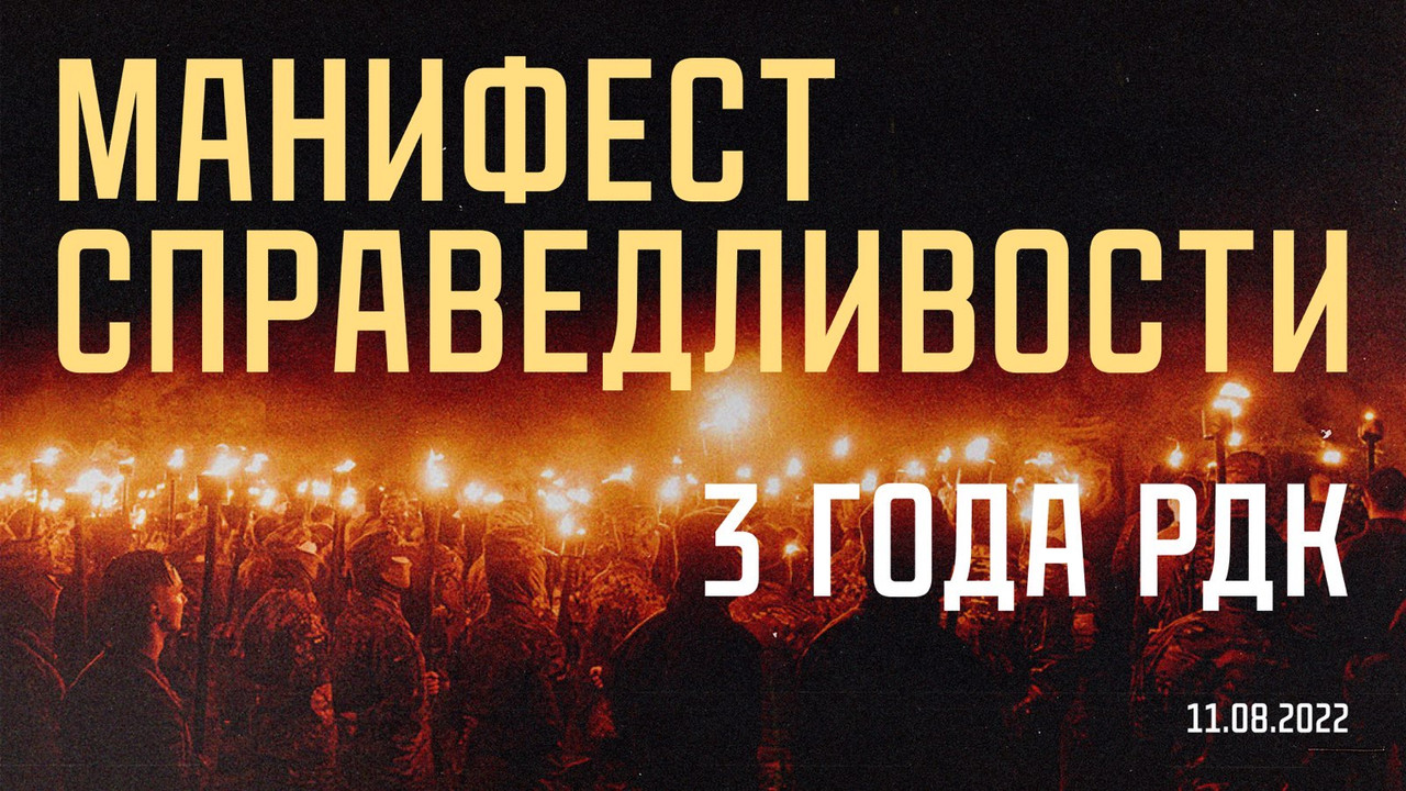 Мы сражаемся за пробуждение национальной памяти, за тех, кто в котле евразийства остался русским. Честь требует усилия и не предполагает комфорта эмиграции – она требует жертвы от каждого, кто встанет под наши знамёна. Ведь быть русским – это не только быть русским этнически, культурно и географически, а ещё и быть идейным наследником и продолжателем общего дела, гордым и честным хозяином своей земли и своей судьбы. РДК – это звон новгородского колокола, это пронзительный взгляд героя, восходящего на плаху, но не предавшего себя. Это последний вздох через сжатые зубы тех, кто не дрогнул в своем последнем бою, проложив путь для нас. РДК – это русский бунт, который предшествует русскому порядку.