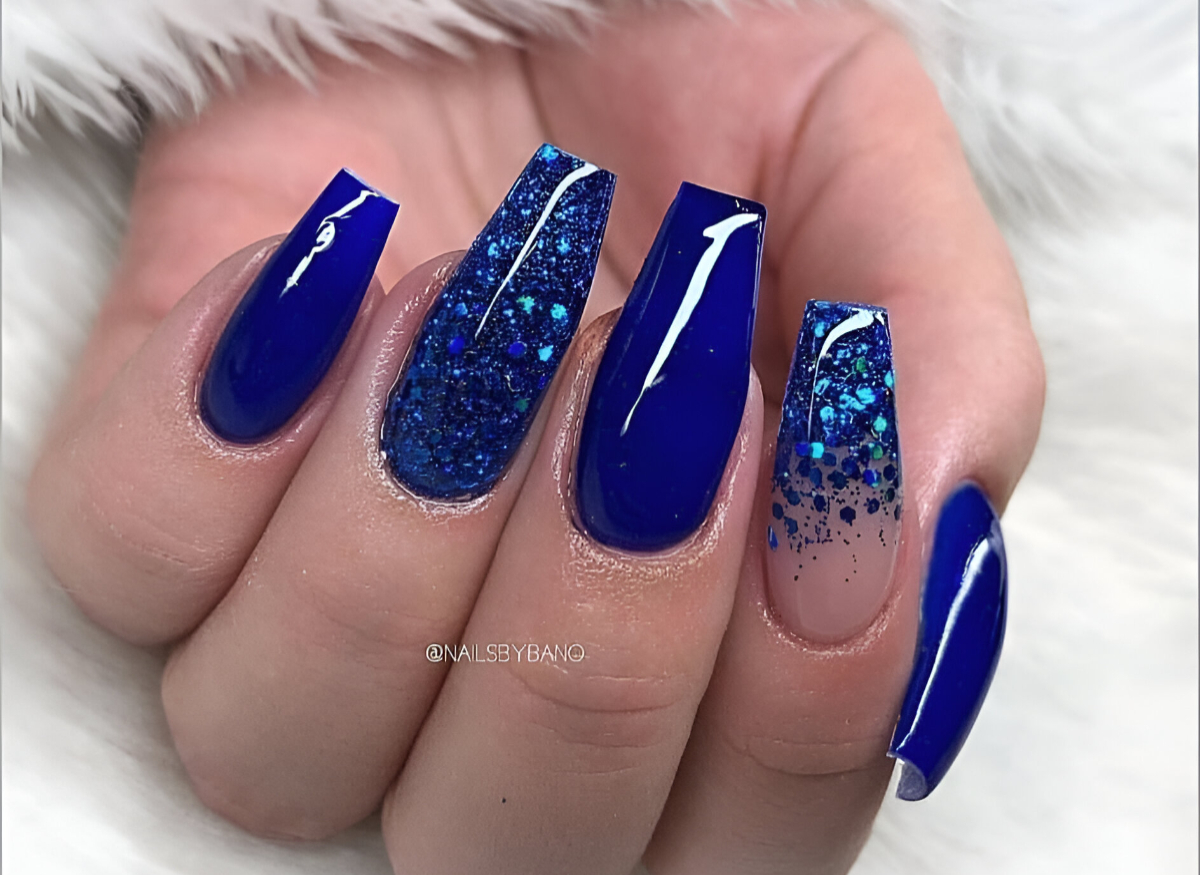 Маникюр Синие Блестки Фото