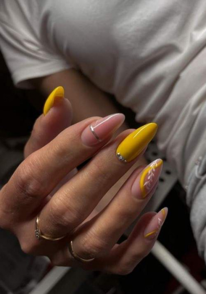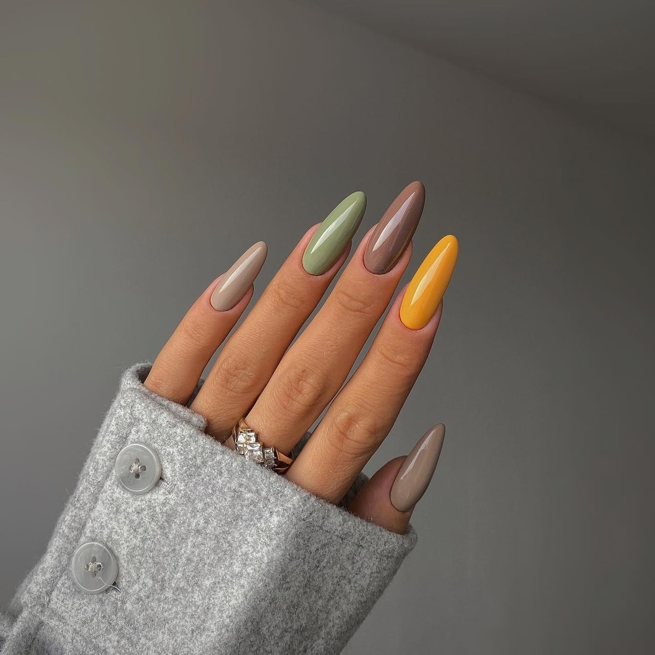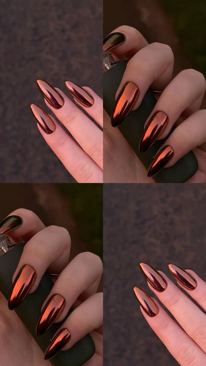 Маникюр осень миндальная форма