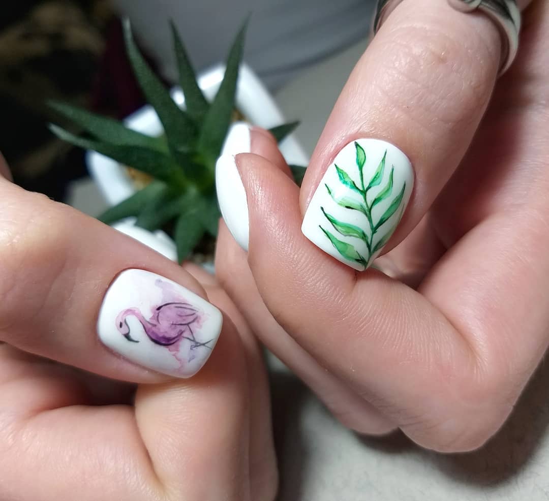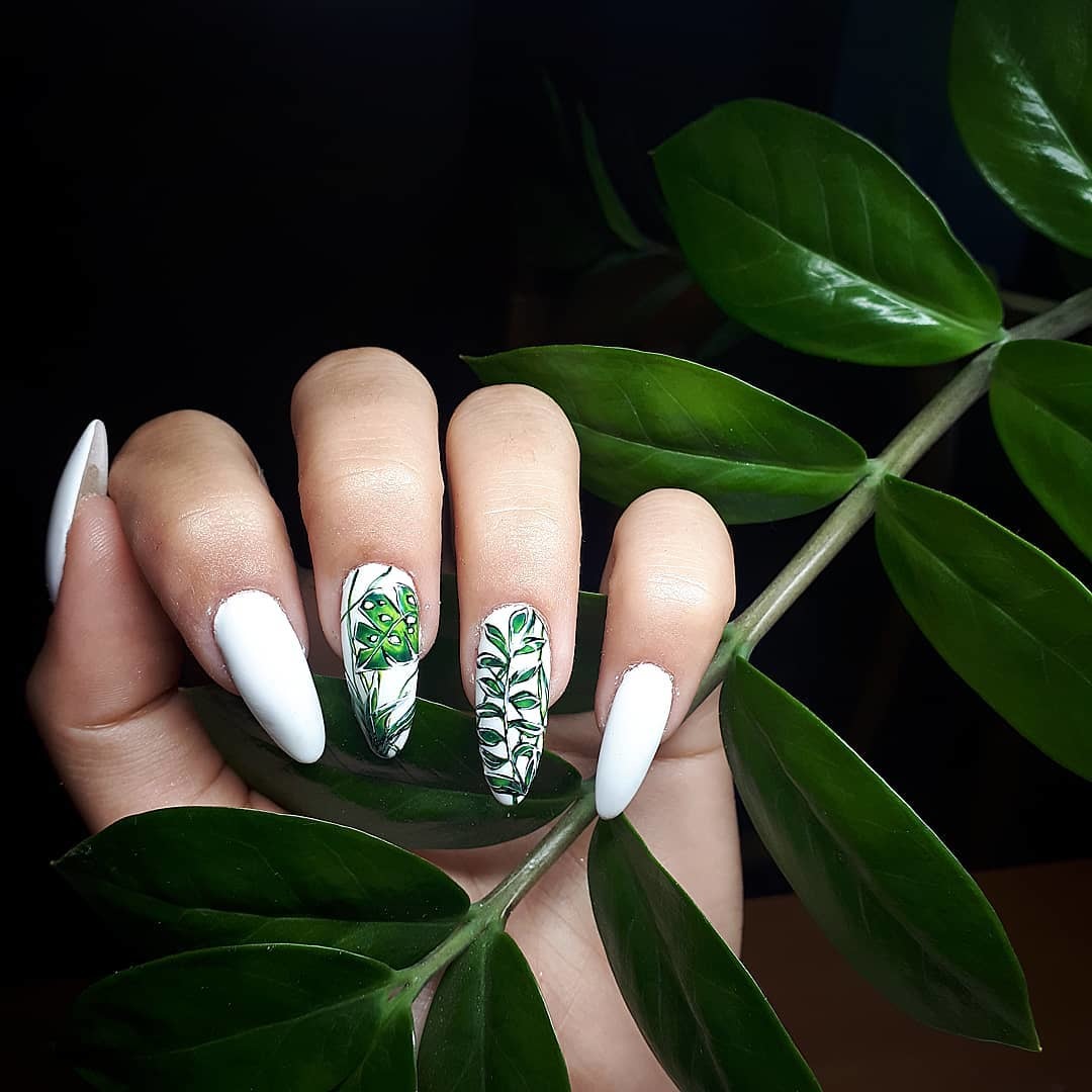 Маникюр с листочками