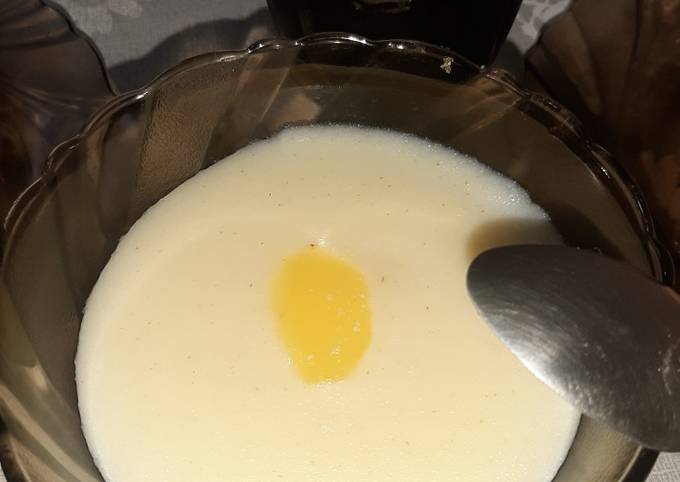 Молоко любой жирности — 3 мультистакана, вода — 1 мультистакан, соль — щепотка, крупа манная — 4 ст . л ., сахар — 3 ст . л ., ванильный сахар — 0,5 ч . л ., масло сливочное — 20 г .