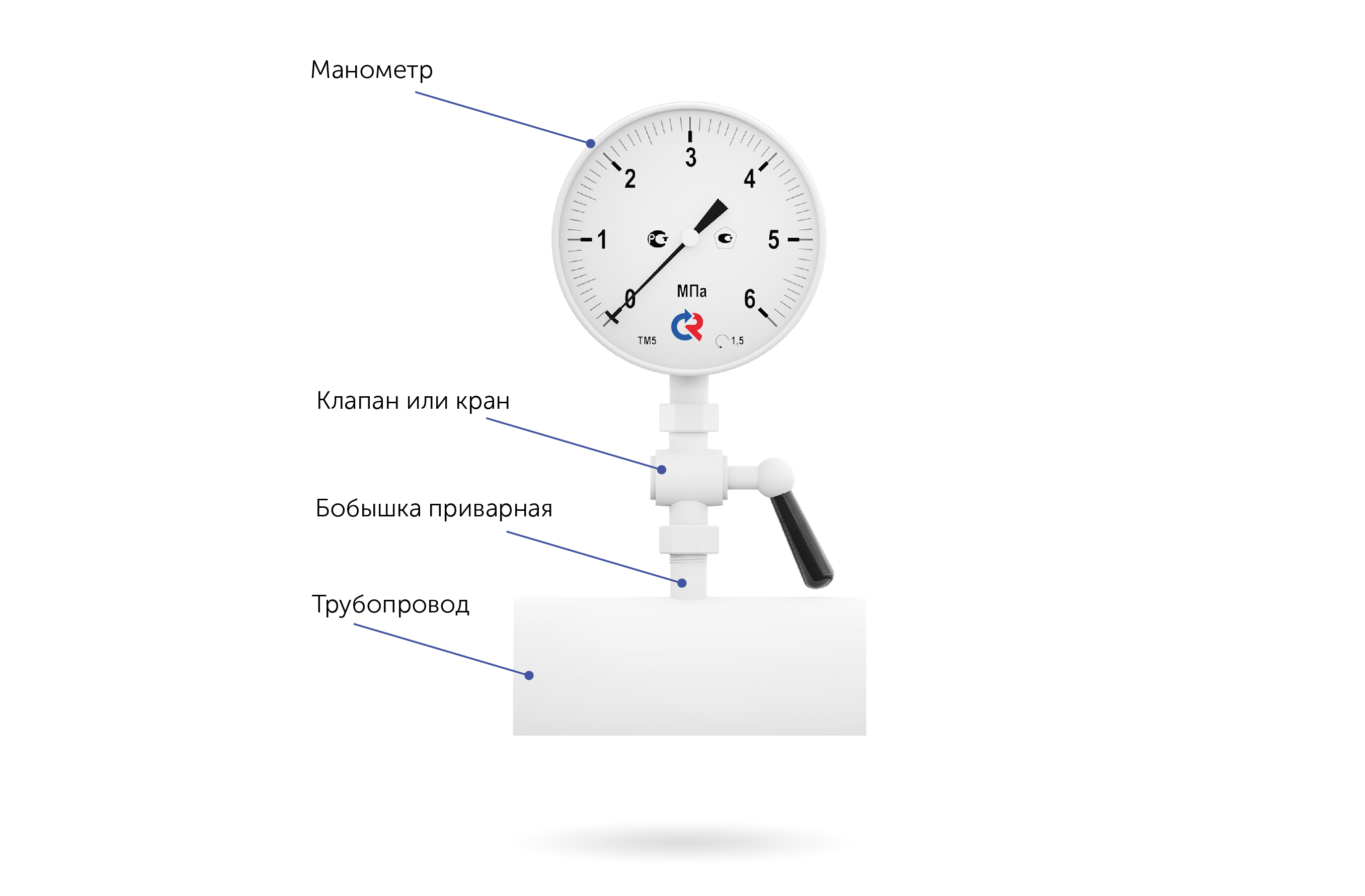 Манометр на трубопроводе показывает