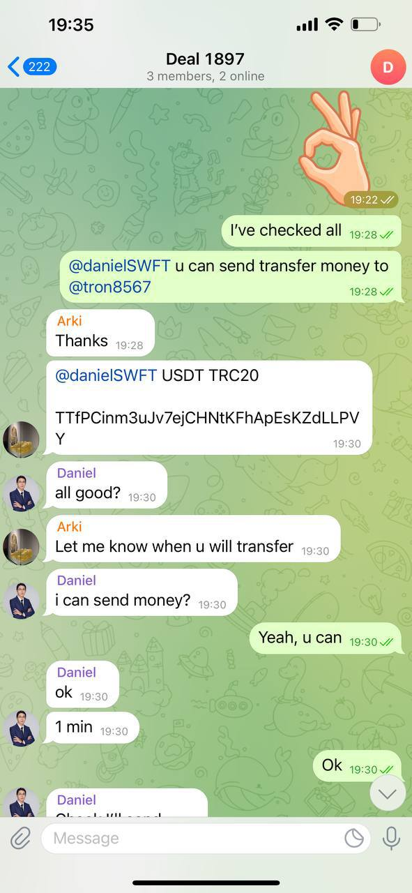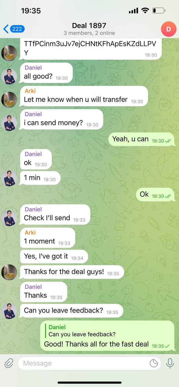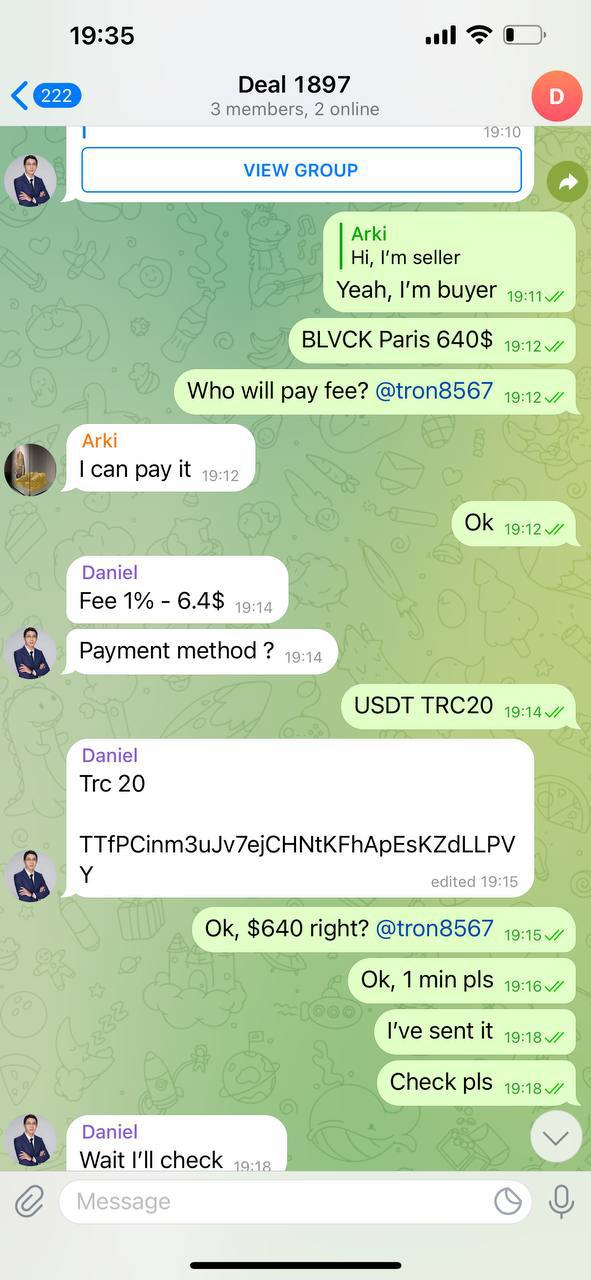 В любой сделке важно вести себя как настоящий покупатель и продавец. Не нужно отправлять фейковый хеш о переводе через минуту после твоего предыдущего сообщения. Будь реальным.