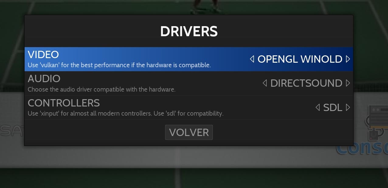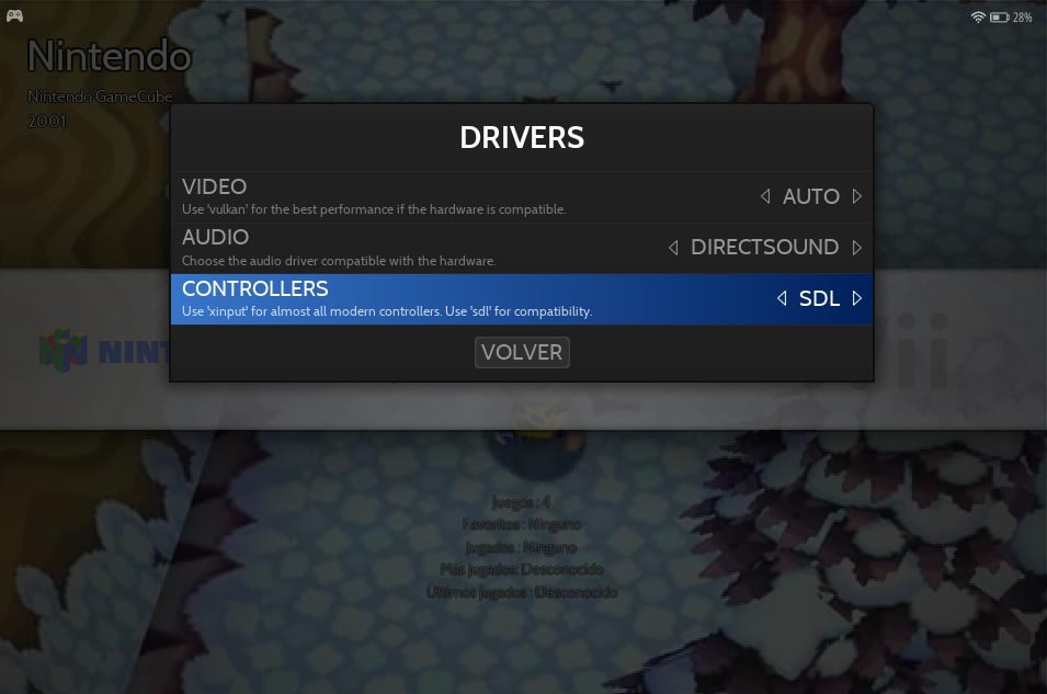 Entrar en el Menu, Opciones de juegos -> Drivers -> Controllers y prueba con directX o SDL