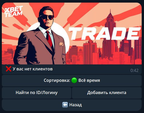 Далее разберем раздел Управления клиентами, тут отображены ваши мамонты, они появляются после перехода по реферальной ссылке в бота и активации его. Если по какой-то причине этого не произошло, вы можете вручную добавить клиента.