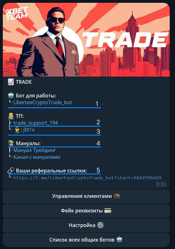 Самое главное это бот для работы(1), это бот куда вы заводите своего мамонта по своей реферальной ссылке(5), которая так же указана на начальной странице каждого направления. Далее указаны аккаунты для связи с технической поддержкой, тп(2) - аккаунт, при помощи которого идет связь с мамонтом, тп(3) - аккаунт, куда вы пишете подробно задачу, тег мамонта и обговариваете с ним все детали. Далее указаны мануалы для сервиса(4), который вы выбрали, там написана подробная информация о самом направлении и пример работы с ним.