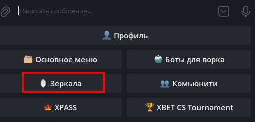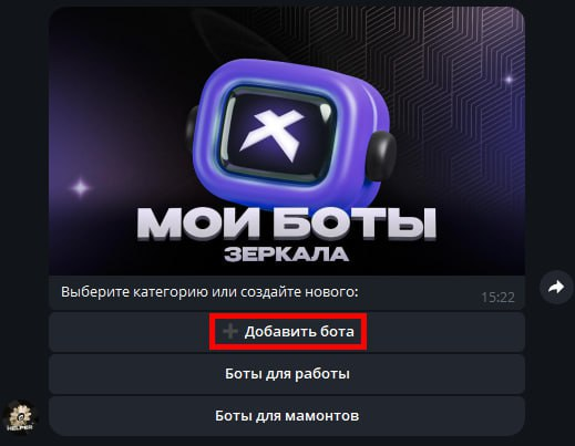 Для начало нужно зайти в нашего основного бота Helper и нажать кнопку Зеркала на панели быстрых кнопок.