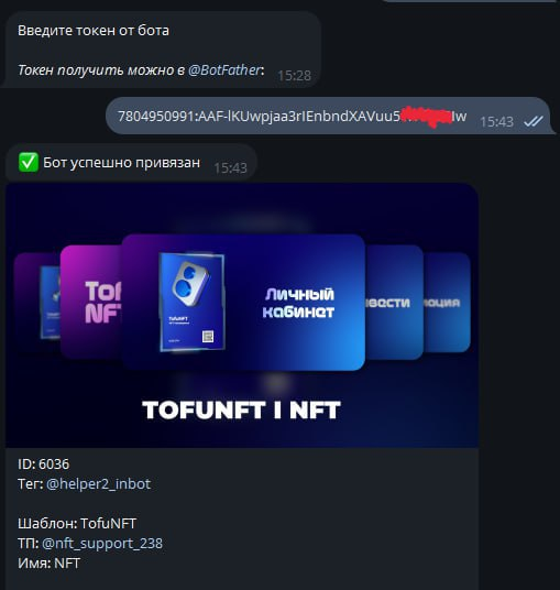 После того как мы придумали тег в моем случае это был "helper2_inbot" - Fatherbot выдает нам тот самый ключик который нам нужно вставить в Helper.