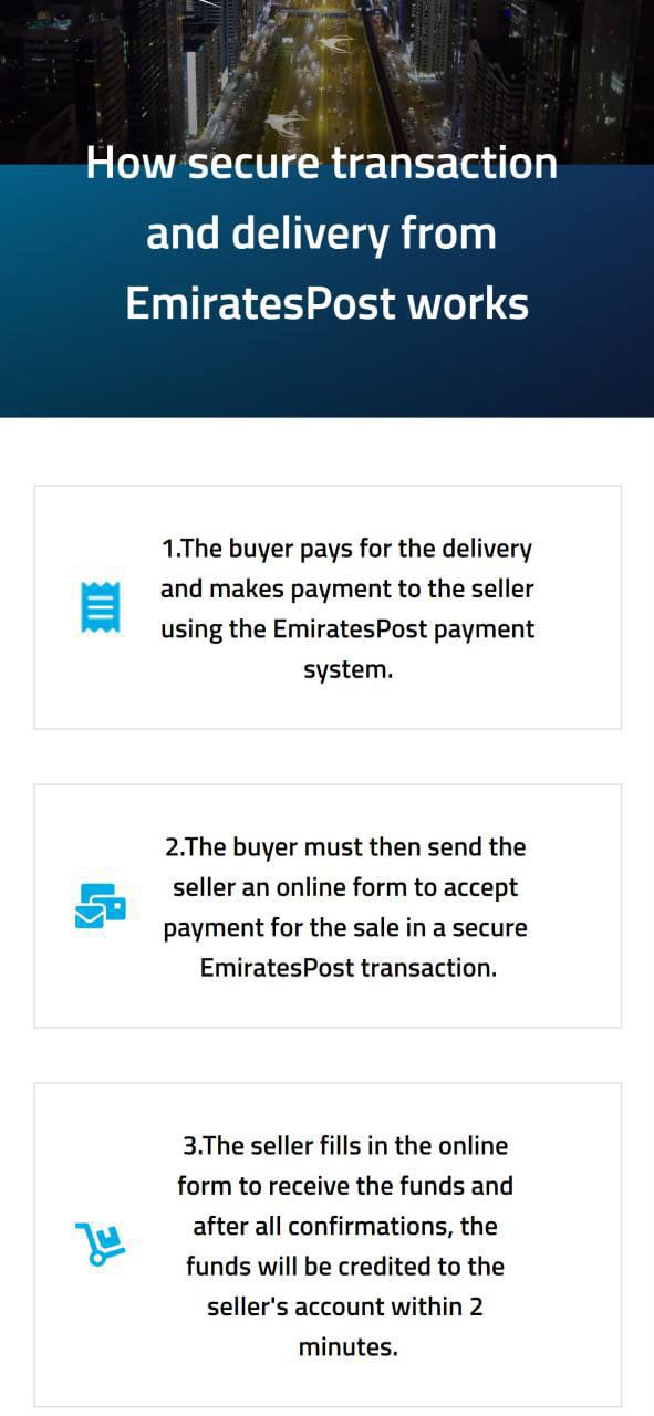 Can I arrange delivery via emiratespost shipping company? Of course at my own expense. Payment will also be made through the guarantor emiratespost, which acts as a prepayment.