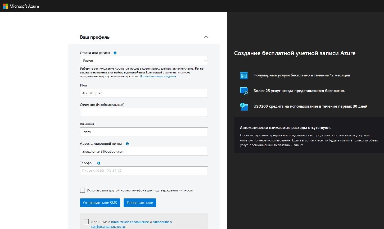 Создали? Отлично, теперь осталось проверить почту на приветственное сообщение от Microsoft Azure. Получили письмо? Тогда смело оставляйте аккаунт, и спустя 48 часов скидывайте данные в формате mail:pass сюда @wpr0fessor и переходите к регистрации нового.