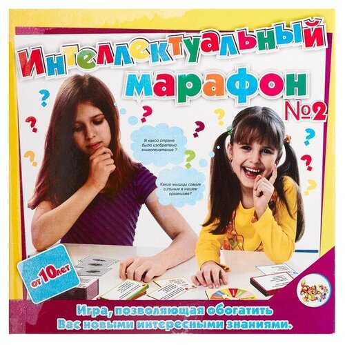 Article : 0998-889. Dimensions : 28 x 4 x 28 cm, Poids : 326 g, Développement des compétences : Attention, Taille de l'emballage : 28 x 28 x 4 cm, En bois naturel : Non, Fonctionne sur batterie : Non, Rétroéclairage : Non, Voix off russe : Non, Licence : Non, Genre de jeu : Quiz, Âge : À partir de 10 ans, Nombre de joueurs : [2,8]. "Marathon intellectuel n°2" est un jeu-questionnaire passionnant dans lequel chacun testera et approfondira ses connaissances sur 6 sujets intéressants : l'art, la musique, la littérature, l'histoire, la science, les gens. Le jeu convient aux enfants à partir de 10 ans. Comment jouer? Les joueurs font tourner la roulette dans l'ordre et la flèche s'arrête sur un certain sujet. Ensuite, le participant tire une carte du jeu et répond à une question du domaine de connaissances abandonné. S'il donne la bonne réponse, il gagne des points ; sinon, le coup passe au joueur suivant. En quoi est-ce utile ? Le jeu élargit les horizons de l'enfant, augmente son vocabulaire et améliore sa mémoire. Le jeune enfant prodige apprend de nombreux faits intéressants sur le monde de la musique, de la littérature, de l’histoire, de l’art et de l’anatomie humaine. C'est inclus dans le kit ? terrain de jeu avec une flèche ; 216 cartes avec des questions et des options de réponses ; Règles du jeu.