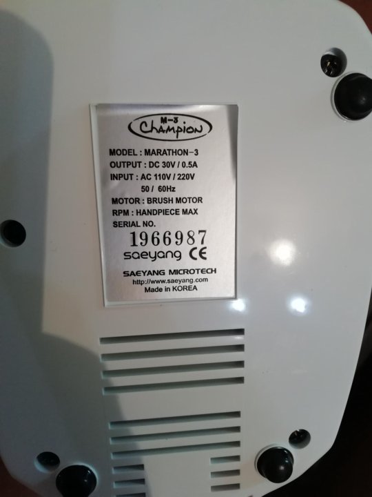 Компания Saeyang Microtech производит они из самых качественных аппаратов-фрезеров или "машинок" для маникюра и педикюра. Как и компания SaeShin, производящая знаменитые аппараты Strong (например Strong 210/105l или Strong 210/102l) компания Saeyang Microtech производит оборудование для зуботехнических лабораторий и стоматологических клиник. Именно благодаря высокому качеству и надежности аппараты для маникюра Marathon завоевали сердца маникюрных мастеров по всему миру. Самыми популярными вариантами являются аппараты: Marathon Champion 3/H35LSP , Marathon Champion 3/SH20N , Marathon Champion 3/H37LN . А аппарат Marathon N7 составил конкуренцию аппаратам Strong 210 и пока выигрывает борьбу за звание лучше аппарата подходящего для маникюра и педикюра благодаря мощности блока 100 Ватт и возможности подключения самых надежных наконечников Marathon H37LN (M45) на 65 Ватт и SH37LN на 85 Ватт!