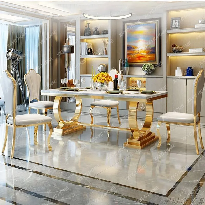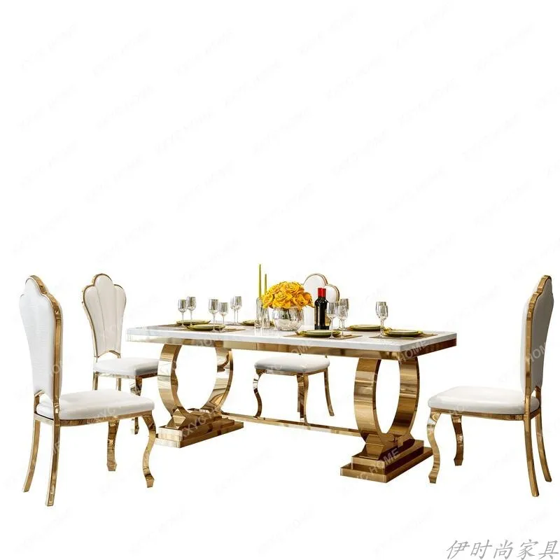 eeoYWRKZbgHere you can buy Marble Dining Table Stainless Steel Rectangular Bright Stone Plate Dining Tables and Chairs Set with free delivery to your post office.