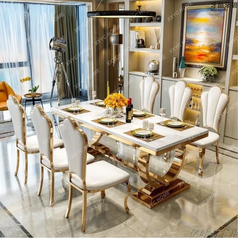 "Marble Dining Table Stainless Steel Rectangular Bright Stone Plate Dining Tables and Chairs Set" * Buy Now With Free Shipping Just For $1517