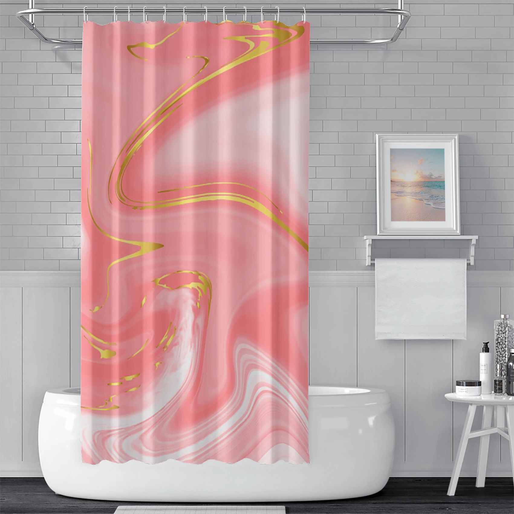 «Marble Pattern Texture Shower Curtains Abstract Gradient Bathroom Waterproof Polyester Bath Curtain Home Decor with Hooks» по лучшей цене на рынке! Всего за 11$ (1045рублей)