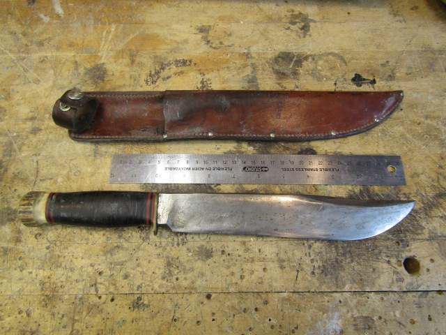 I believe this knife dates somewhere between 1933 and 1936 . The sheath has a moose on it so I believe it was made later than the knife . Here are a few pictures and would appreciate any comments from Marbles experts .