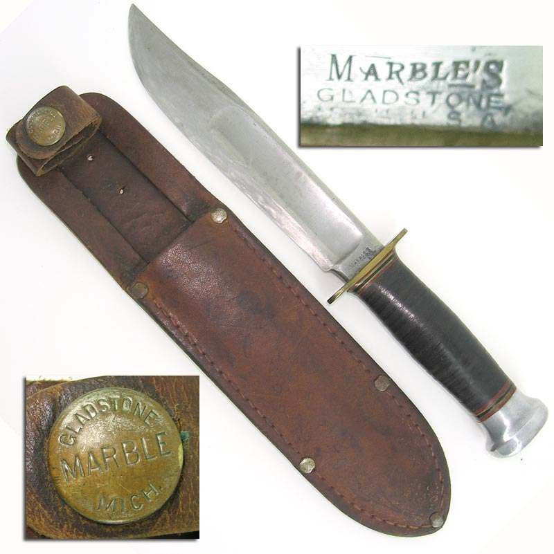 As with most knives there are no hard fast rules but the Marbles knives did change with time and the handles, pommels and sheaths as well as the stamps can help date the production time frames . Wayne If I have seen further it is by standing on the shoulders of giants .