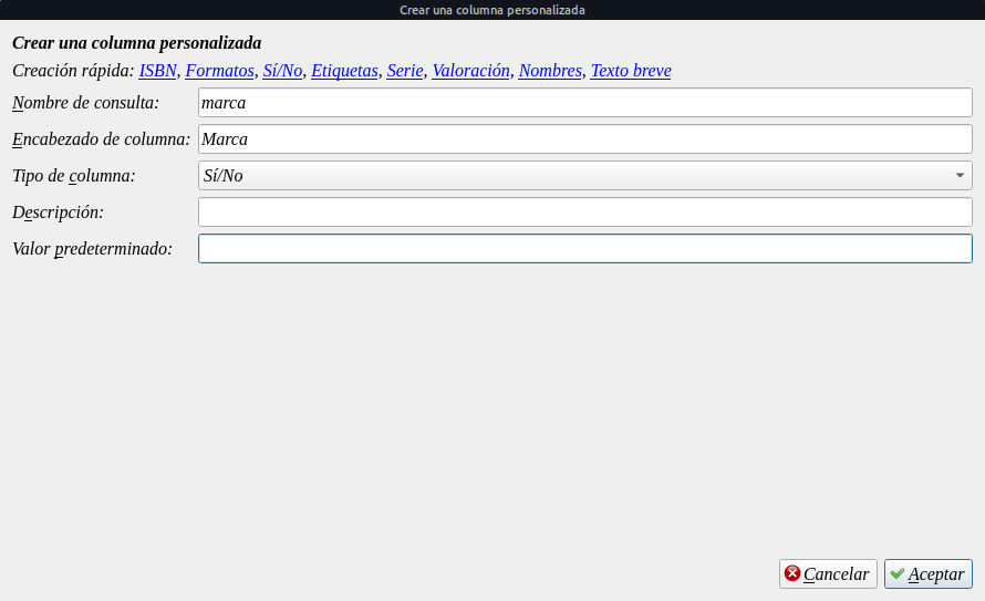 WalterEn el caso de no querer instalar el plugin reading list, una de las maneras que creo que seria interesante poder marcar libros para diferentes fines es crear una columna personalizada. Preferencia / añadir columna personalizada