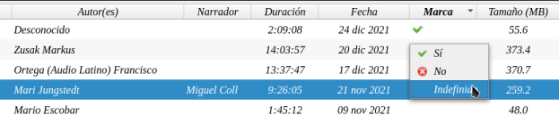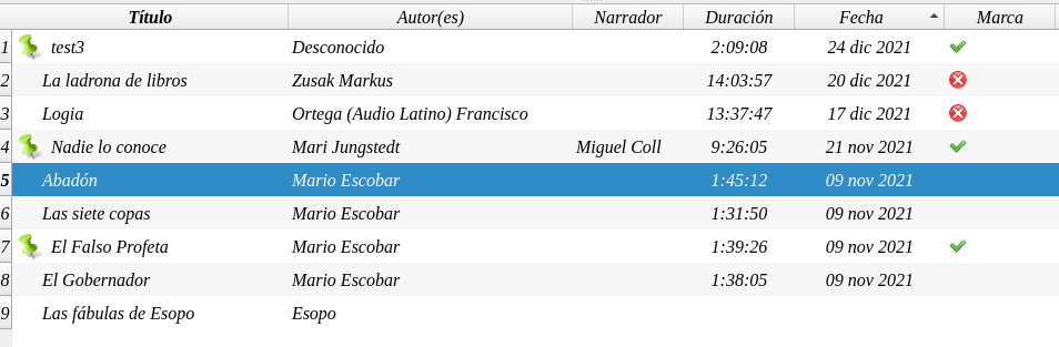 Y se produce la magia de todos los libros que en la columna Marca sea verdadero se le coloca un pin o una chinchilla verde en el titulo,