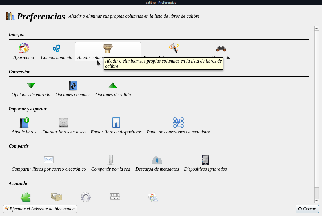Le damos en Aceptar y Aplicar. Reiniciamos Calibre