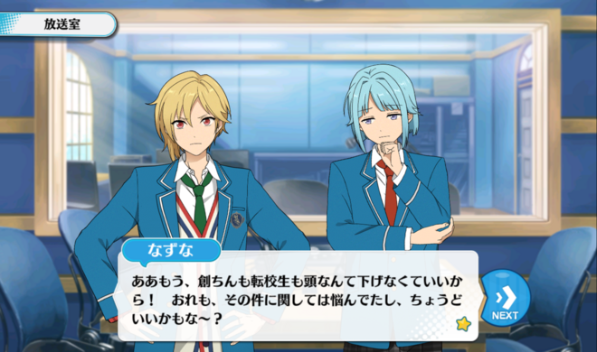 Назуна: Ох, да ладно вам, Хаджиме-чин, и Анзу! Вам не нужно так склонять голову. Я тоже думал об этом, так что на самом деле, вы пришли как раз вовремя.