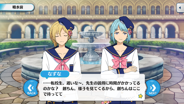 Назуна: Мы будем ожидать у фонтана, так что приходи как только сможешь~