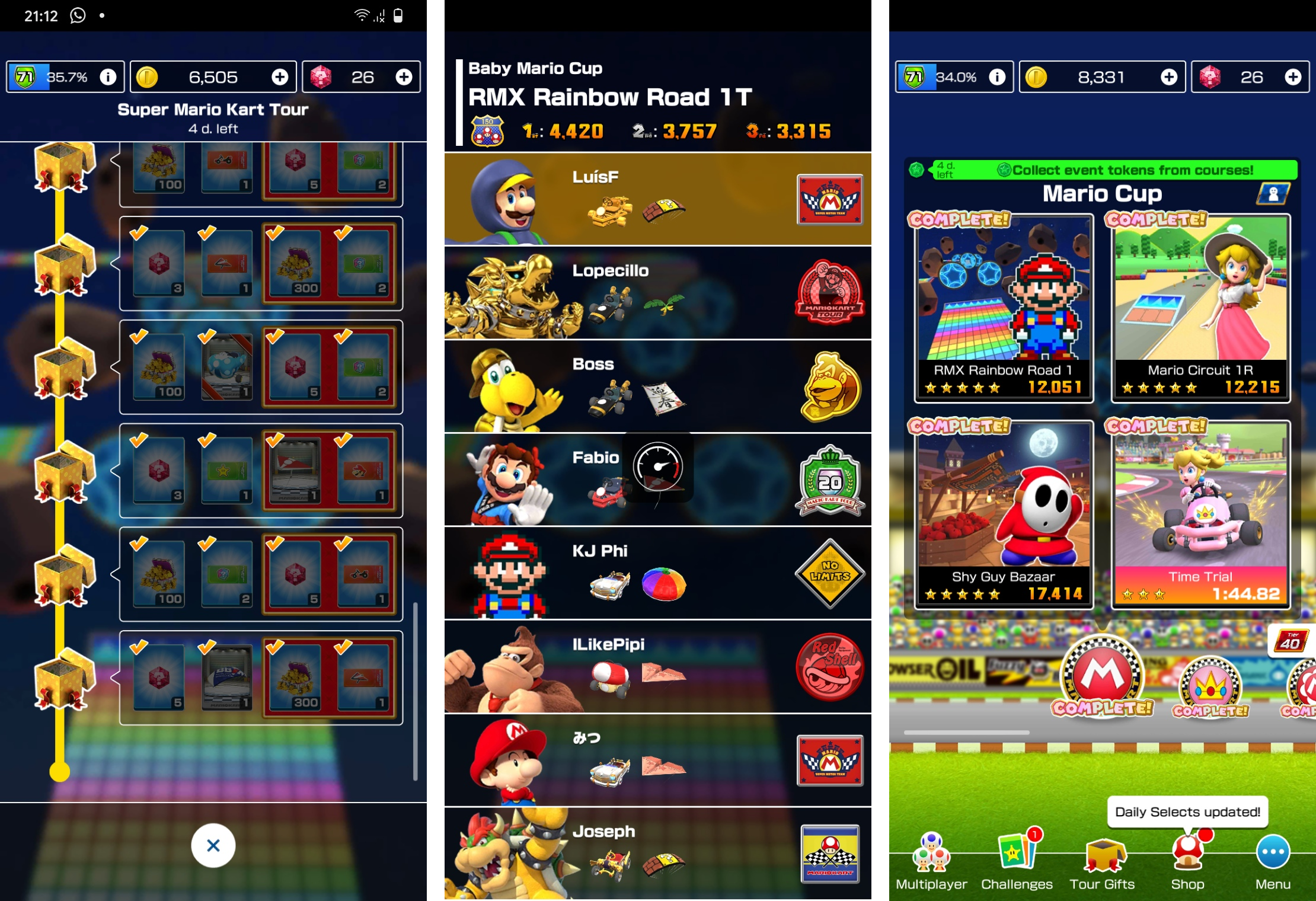 Mario Kart Tour is available for free on the Play Store, but you can make in-app purchases, such as the Gold Pass that allows you to earn more rewards, or buy rubies and characters.