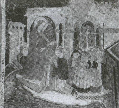 Мария Магдалина подняла заплаканные глаза и увидела, что перед ней сидят два ангела . Когда те спросили о причине страданий несчастной девы, та ответила, что ее мучает неизвестность .