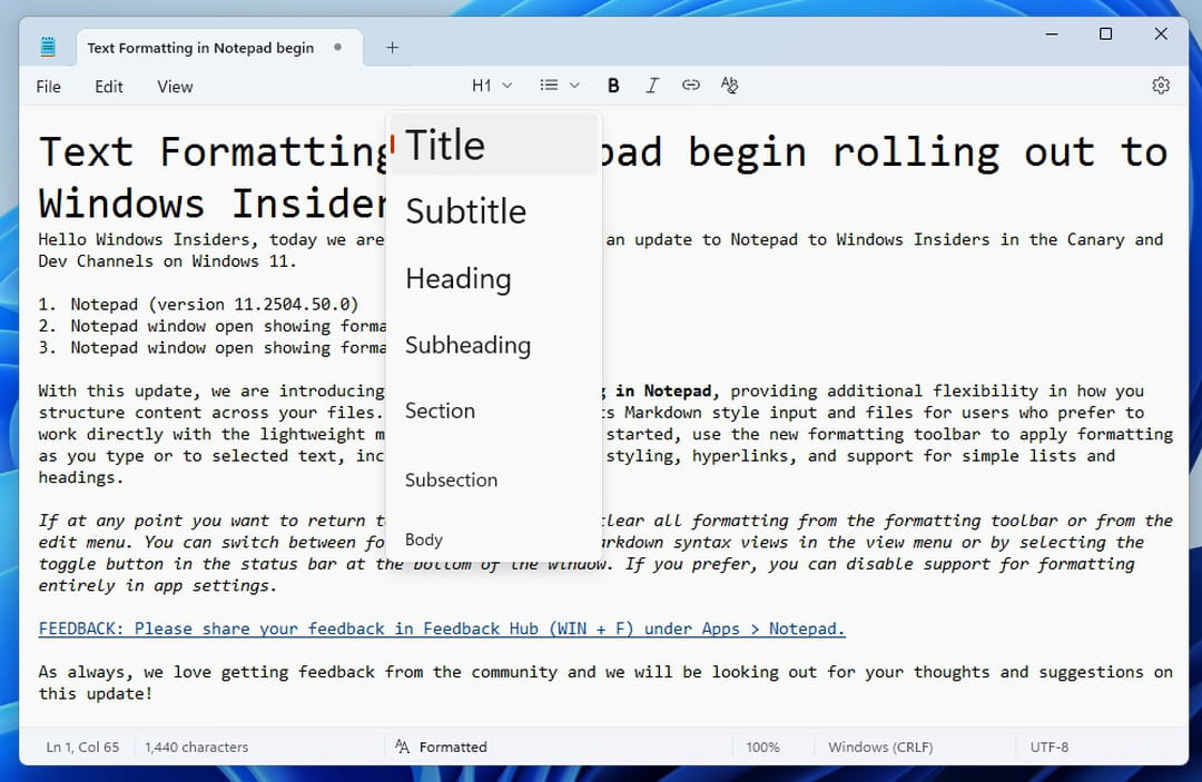 Markdown format
