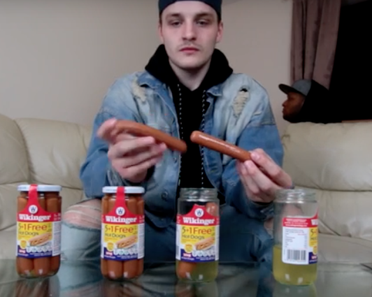 Marlene mange une grosse saucisse