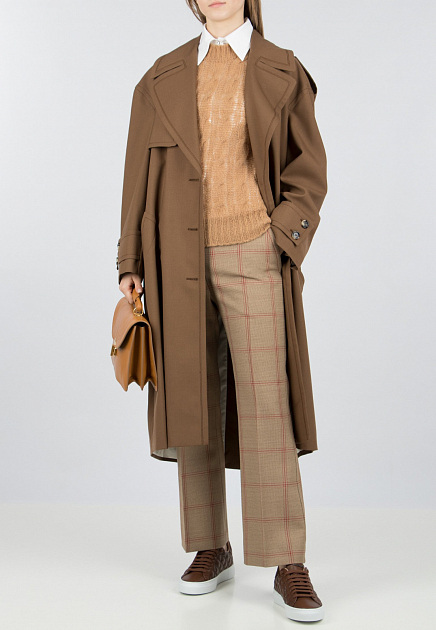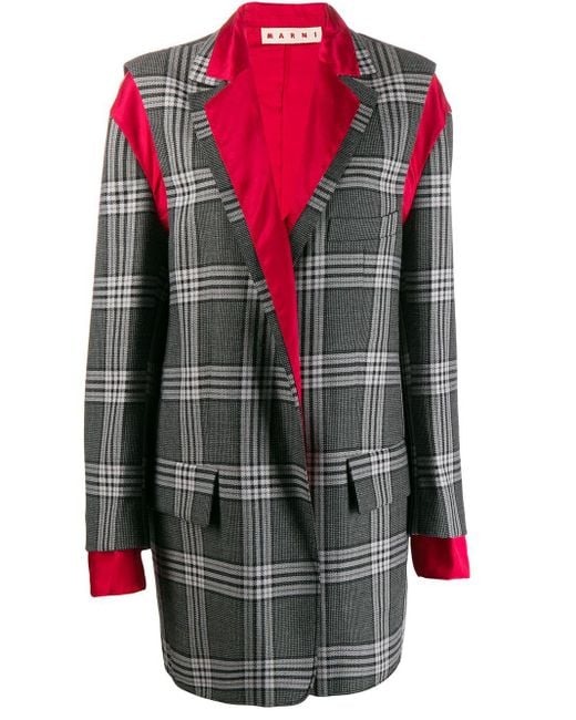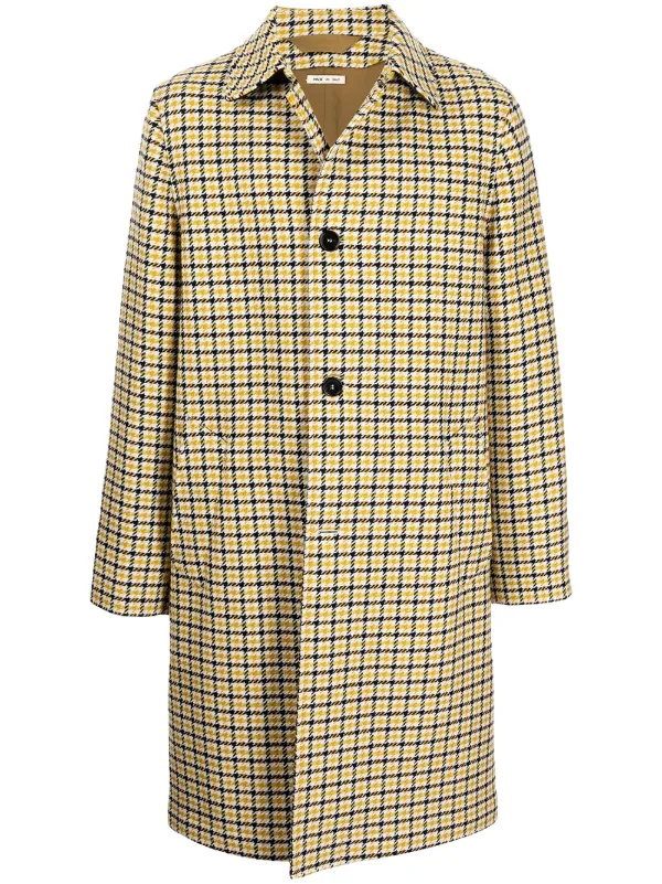 Пальто в клетку от Marni (Марни) . Зазубренные лацканы, застежка на пуговицах спереди, передние карманы с клапанами, длинные рукава и манжеты на пугови