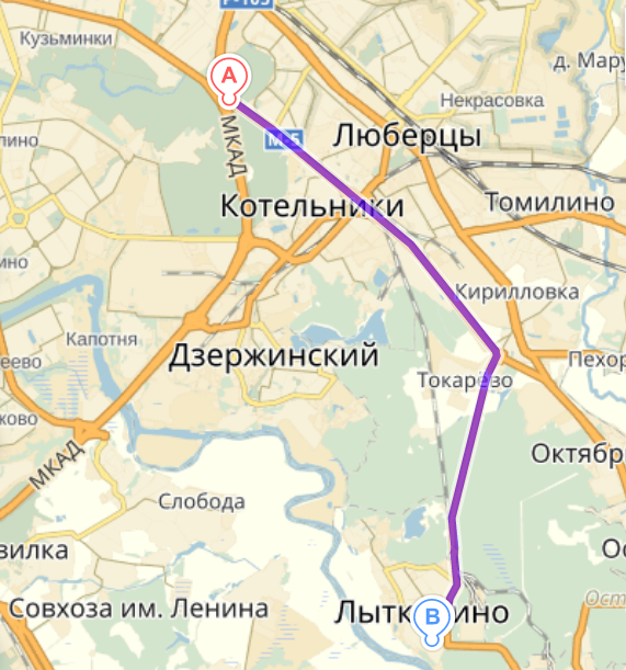 Маршрут от томилино