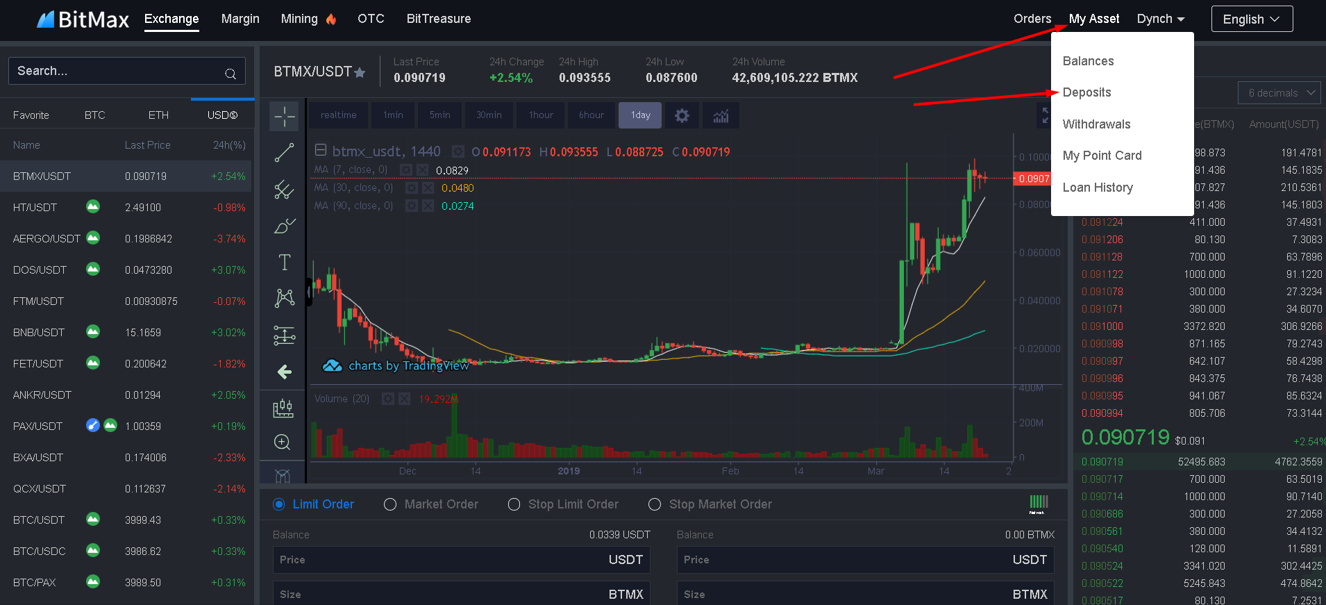 Для этого идем в раздел My Asset и тыкаем Deposits