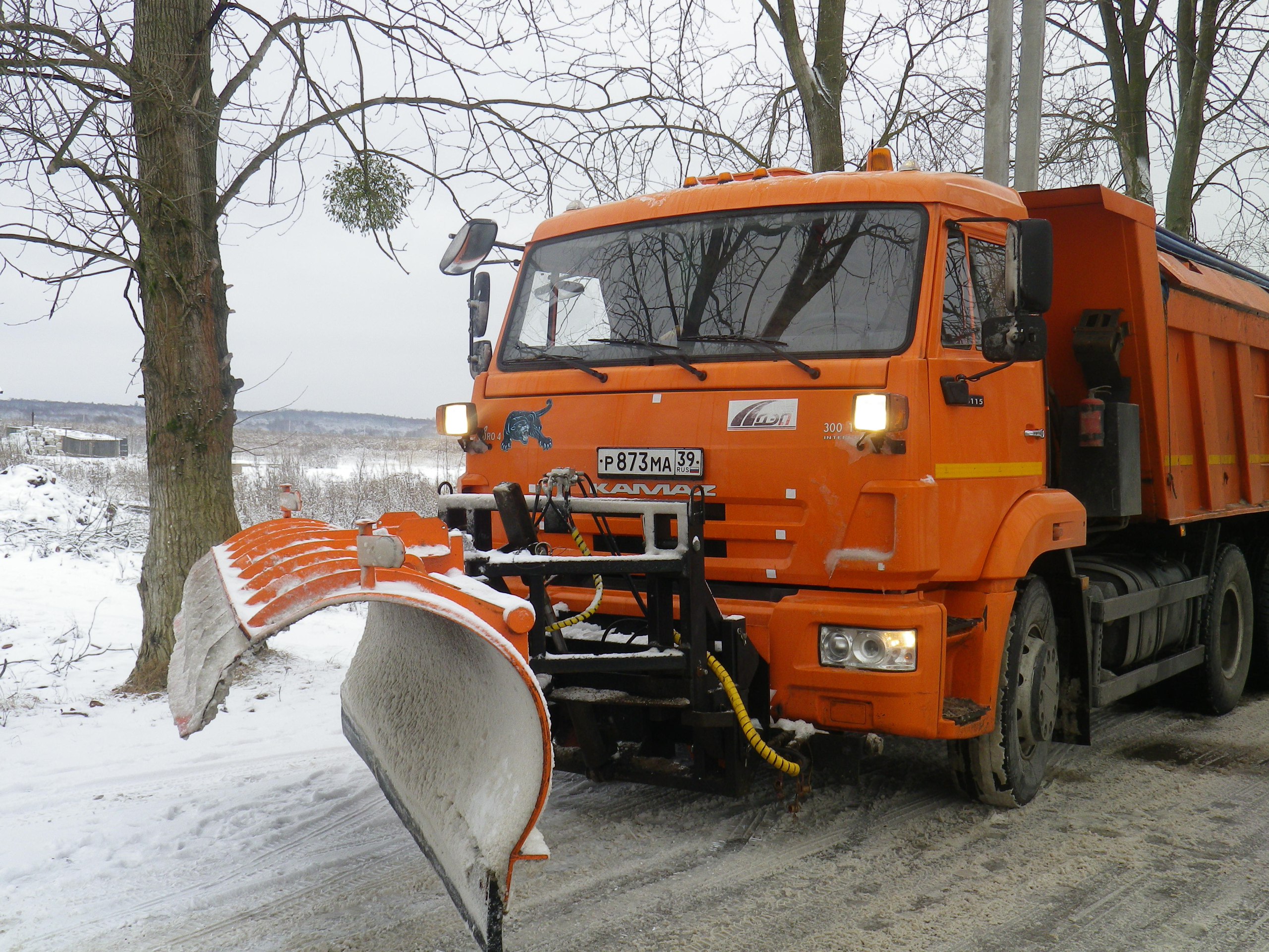 Машина чистит снег