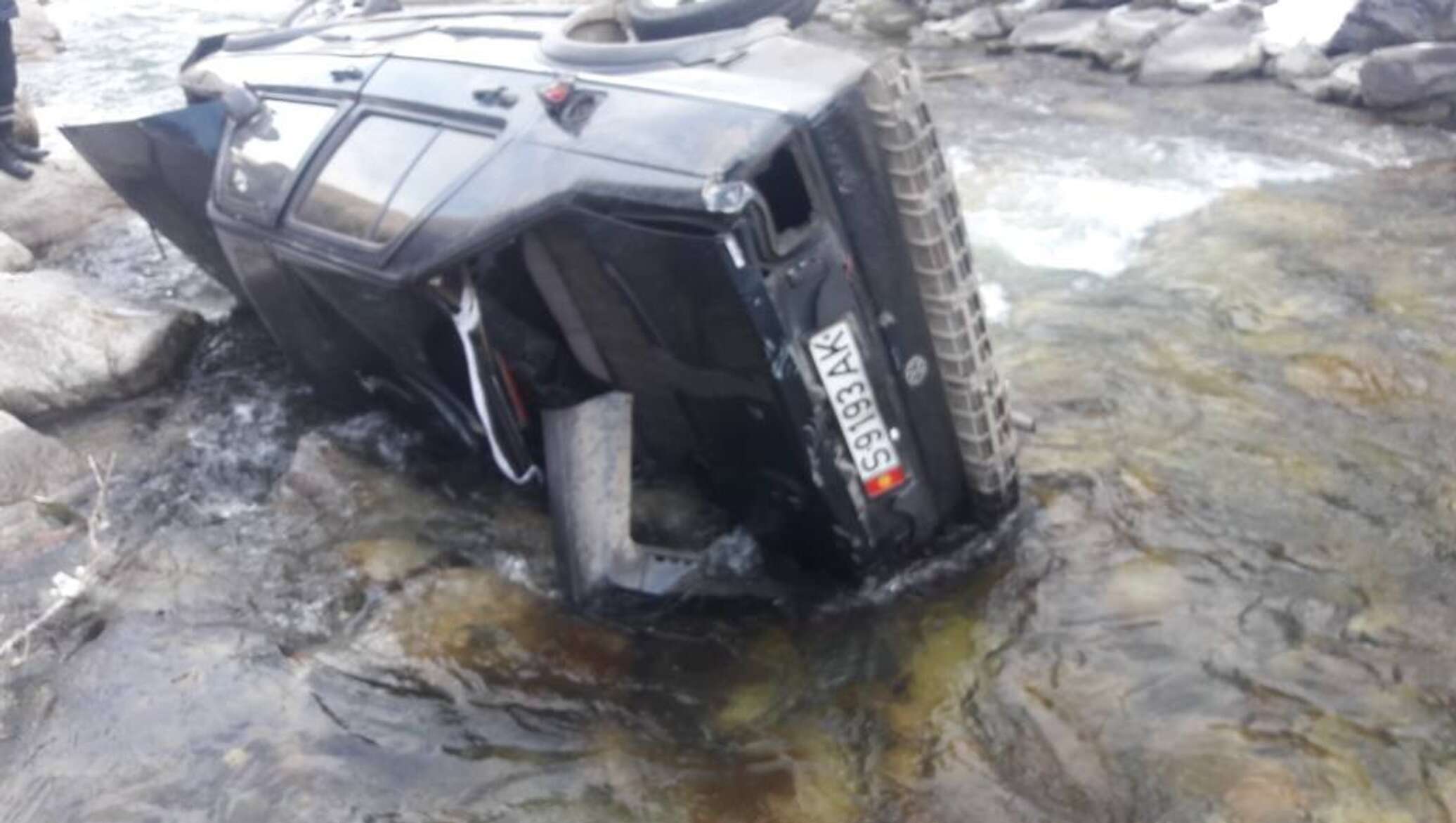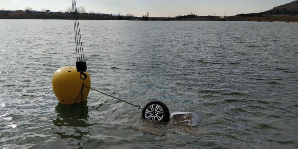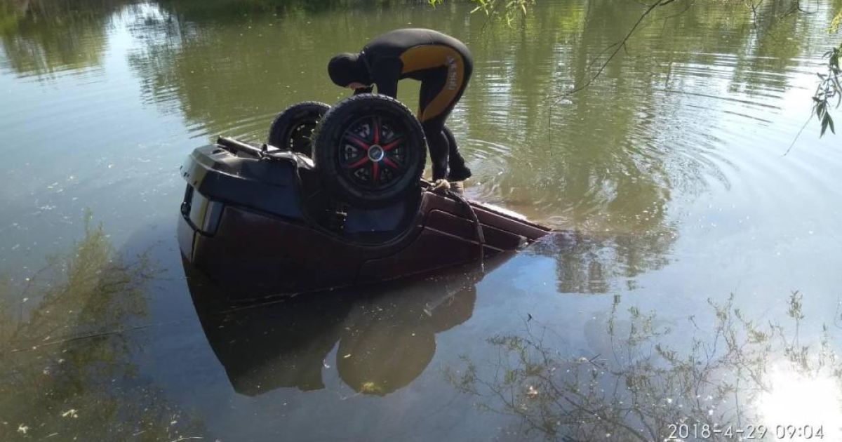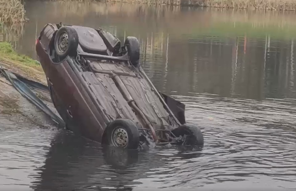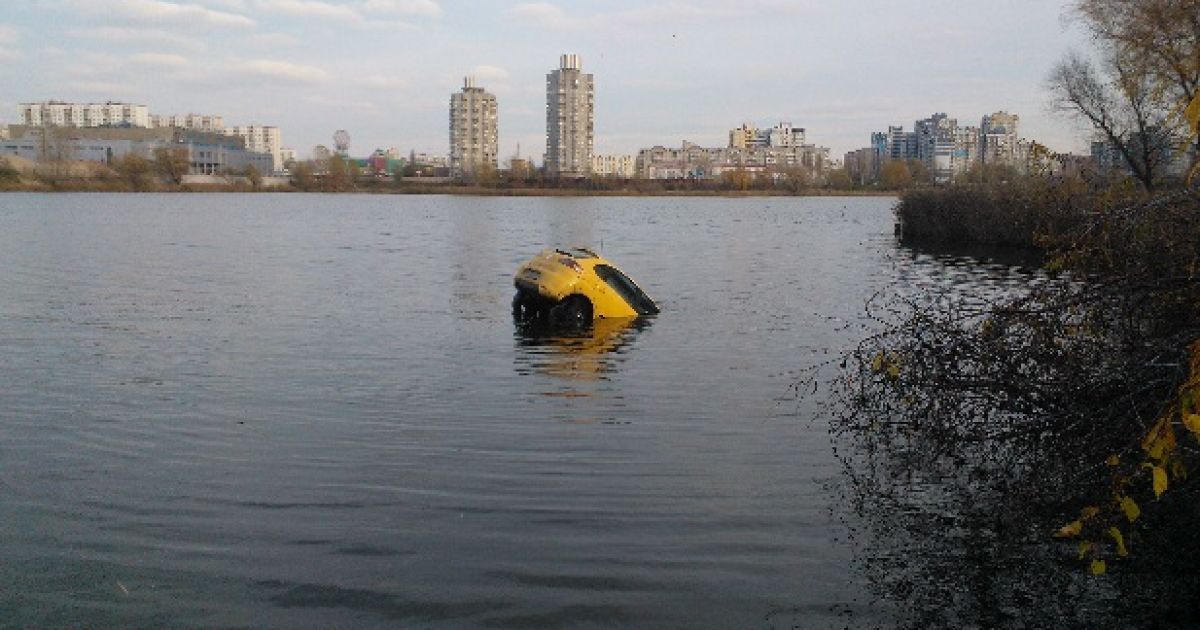 Машина упала в озеро