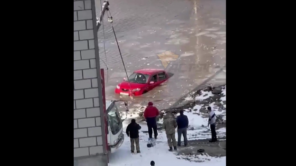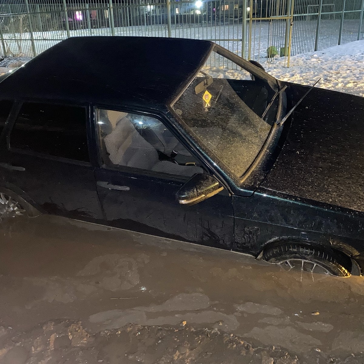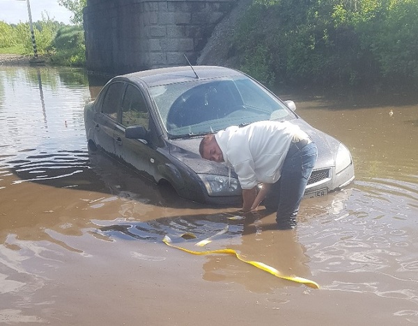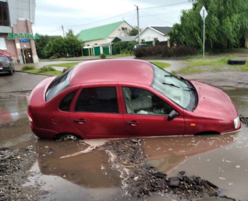 Машина утонула в луже