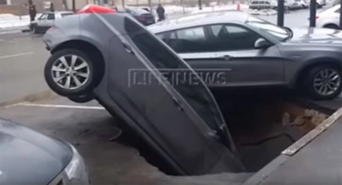 Машины падают в яму