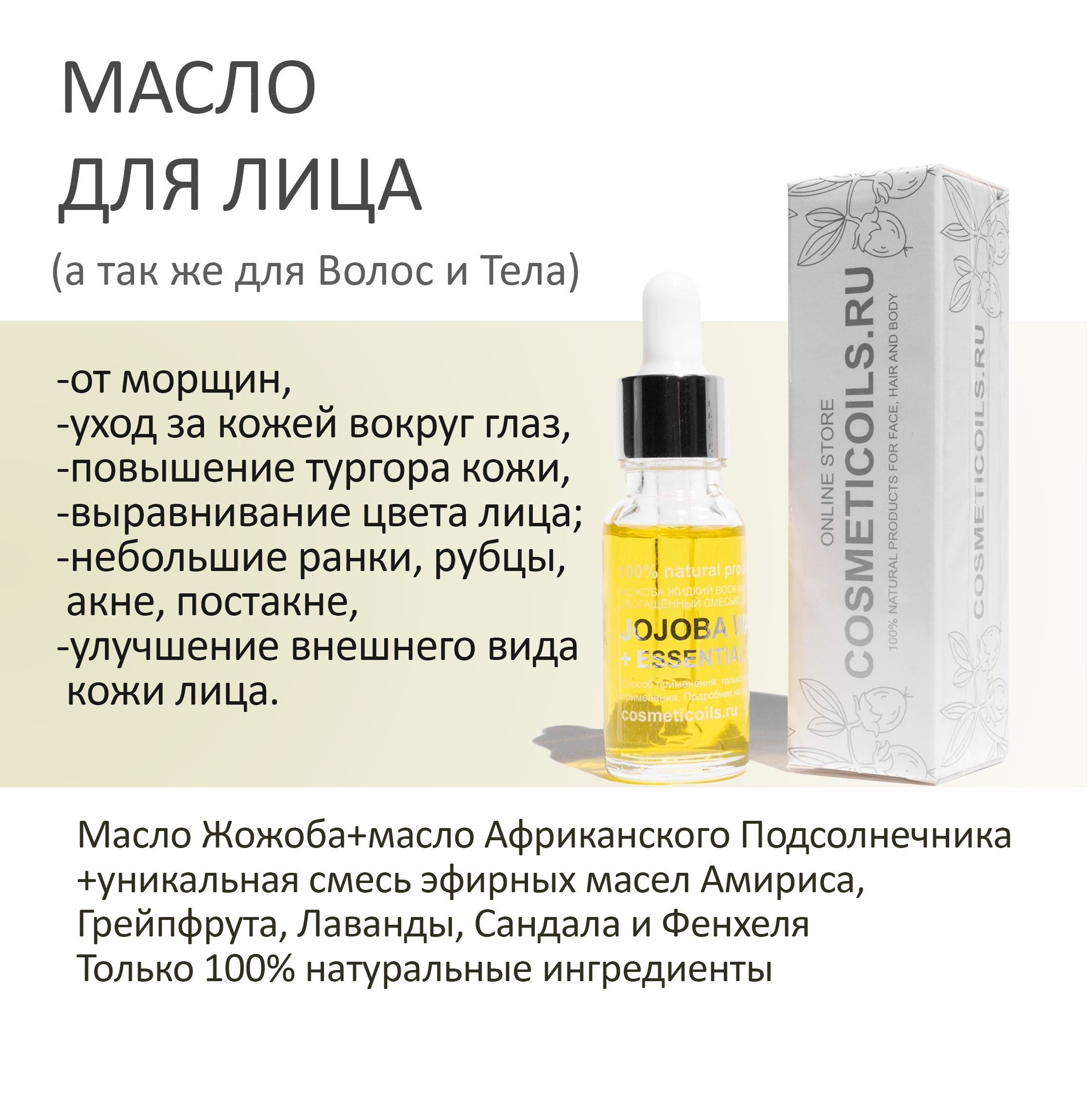 Масло фенхеля для лица в сочетании с любым базовым маслом или для обогащения основных косметических средств . В чистом виде используют только точечно .