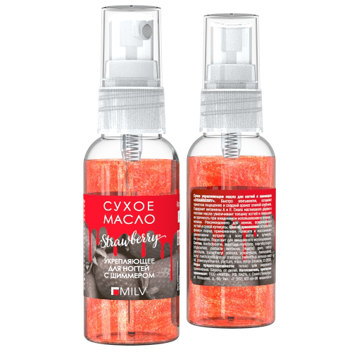 MILV это укрепляющее масло для ломких ногтей и сухой кутикулы . Сухое укрепляющее масло для ногтей с шиммером быстро впитывается, оставляет приятное ощущение и свежий фруктовый аромат персика и груши . Содержит витамины А и Е .